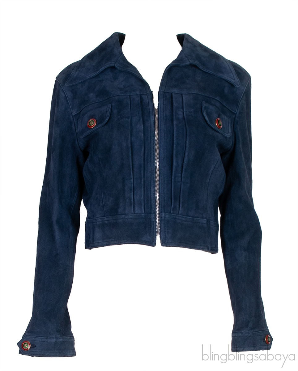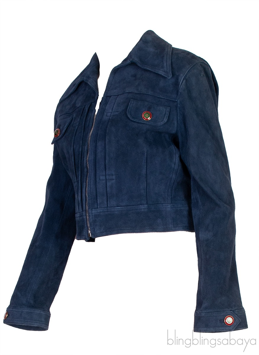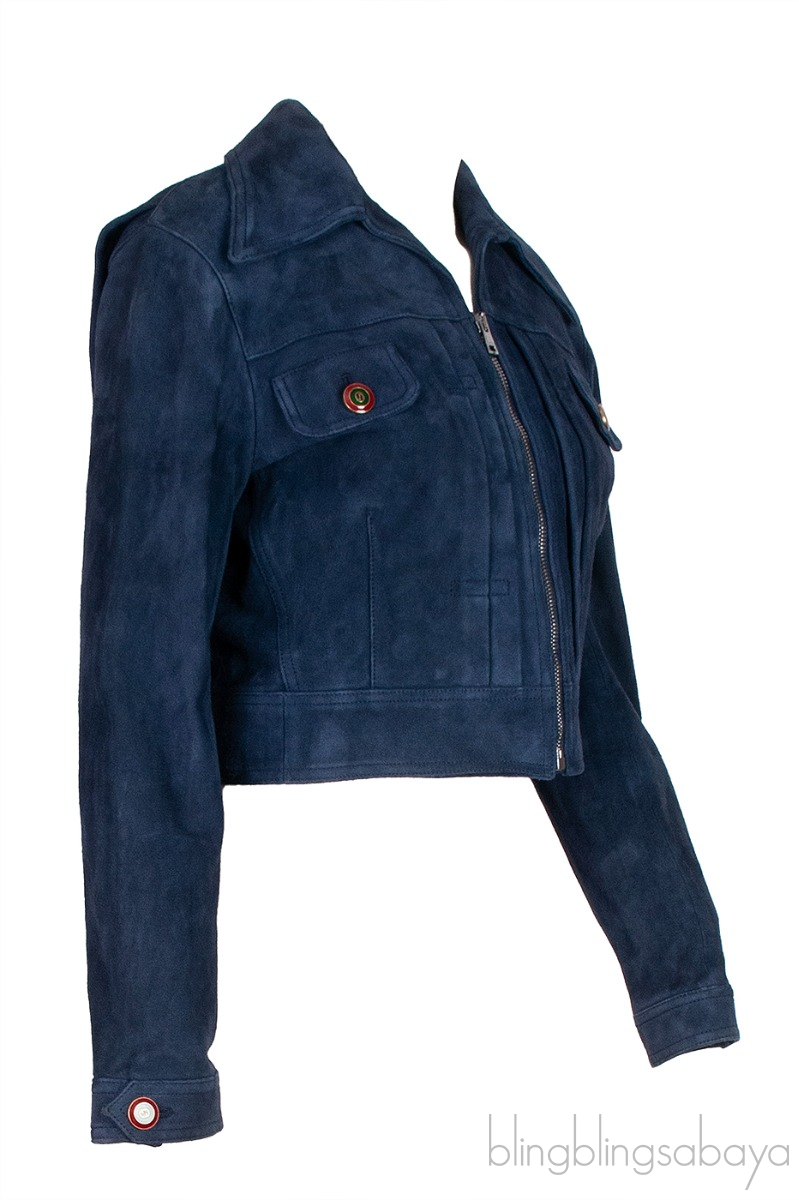 Blue Suede Tiger Loved Crop Leather Jacket from Gucci!