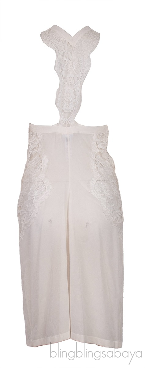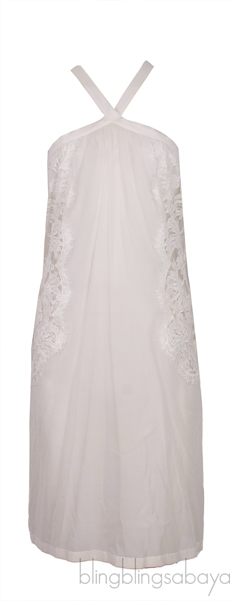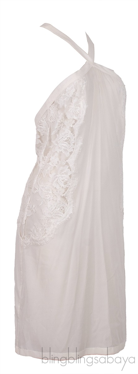 This White Halter Neck Camisole Dress from La Perla is crafted from 91% Silk and 9% Elastane. This camisole dress features a halter neck design, floral lace sheer detailing on both sides, pull-over.