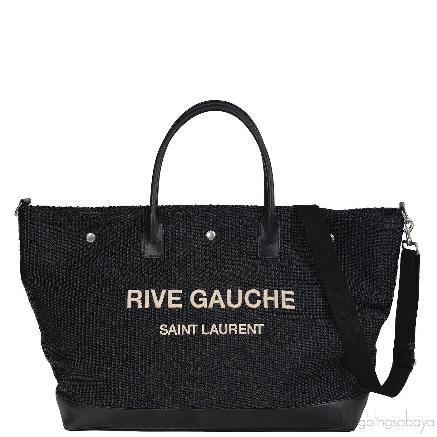 Saint Laurent Black Raffia Rive Gauche Black Oversize Tote