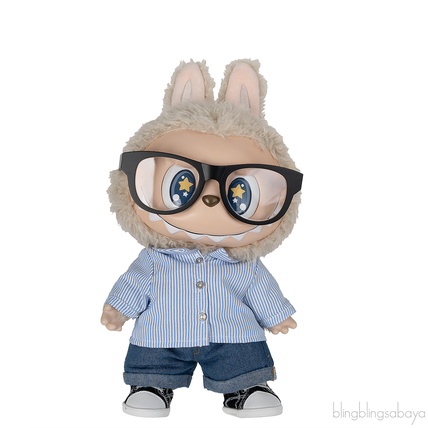 Pop Mart Labubu Flip With Me DollThe Pop Mart Labubu Flip With Me doll features Labubu dressed in a cozy bunny hood with soft textured detailing, paired with a striped button-up shirt, denim shorts, and sneakers. The standout feature is its flip-style eyes, revealing a playful expression, and it comes with black sunglasses that add a cool, stylish touch. Carefully crafted with high-quality materials, this collectible is perfect for display and Pop Mart enthusiasts.
