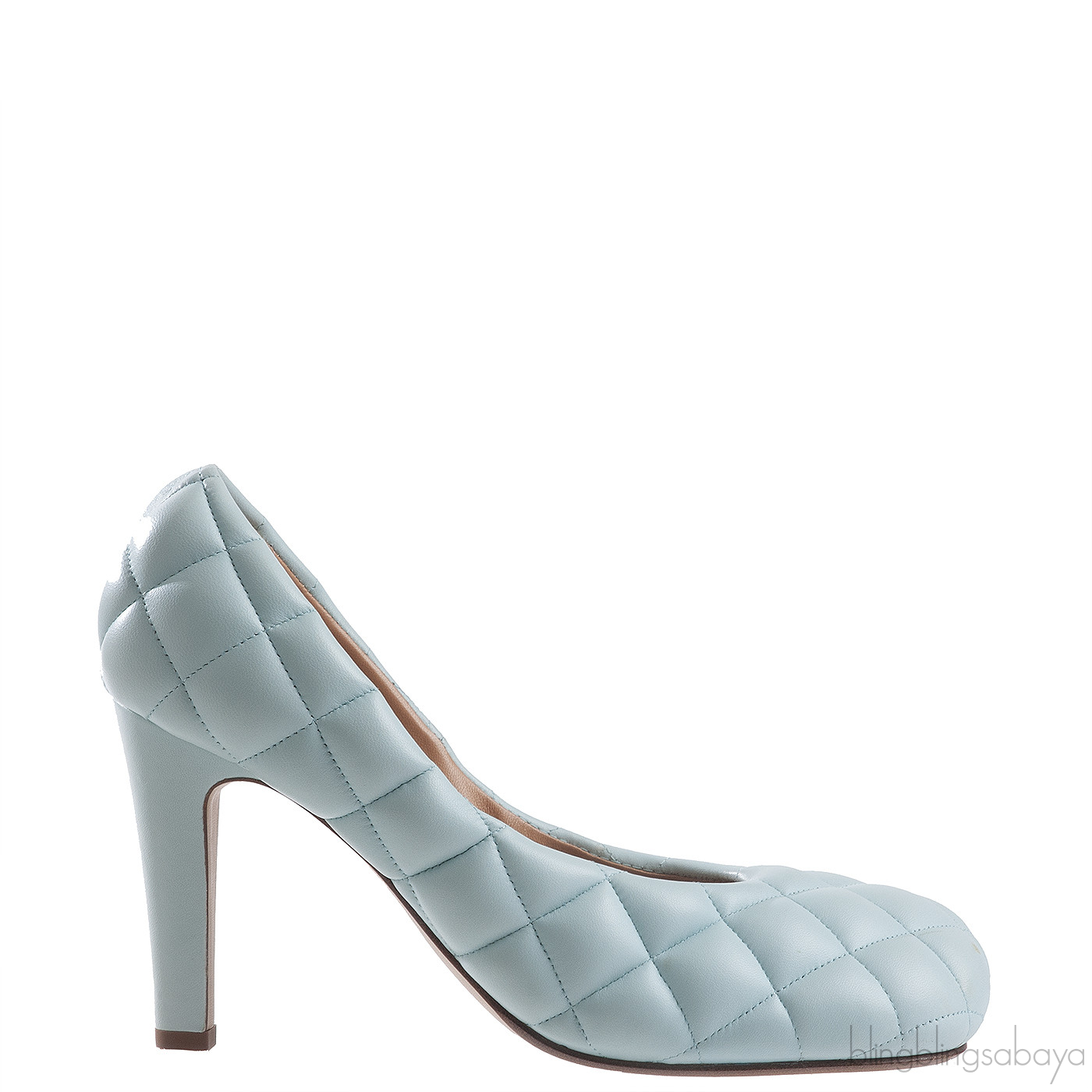 Bottega Veneta Light Blue Padded Block Square Toe Quilted Heels 37.5