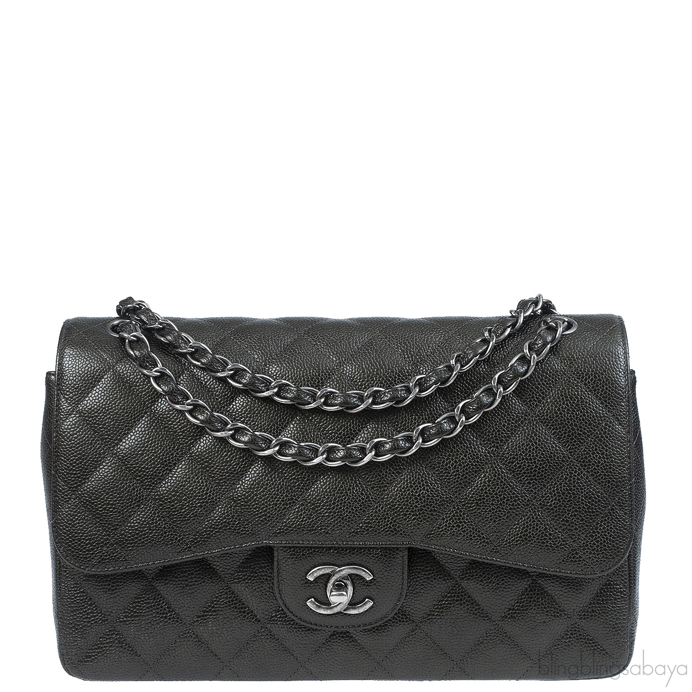 Chanel Charcoal Grey Caviar Jumbo Flap Bag