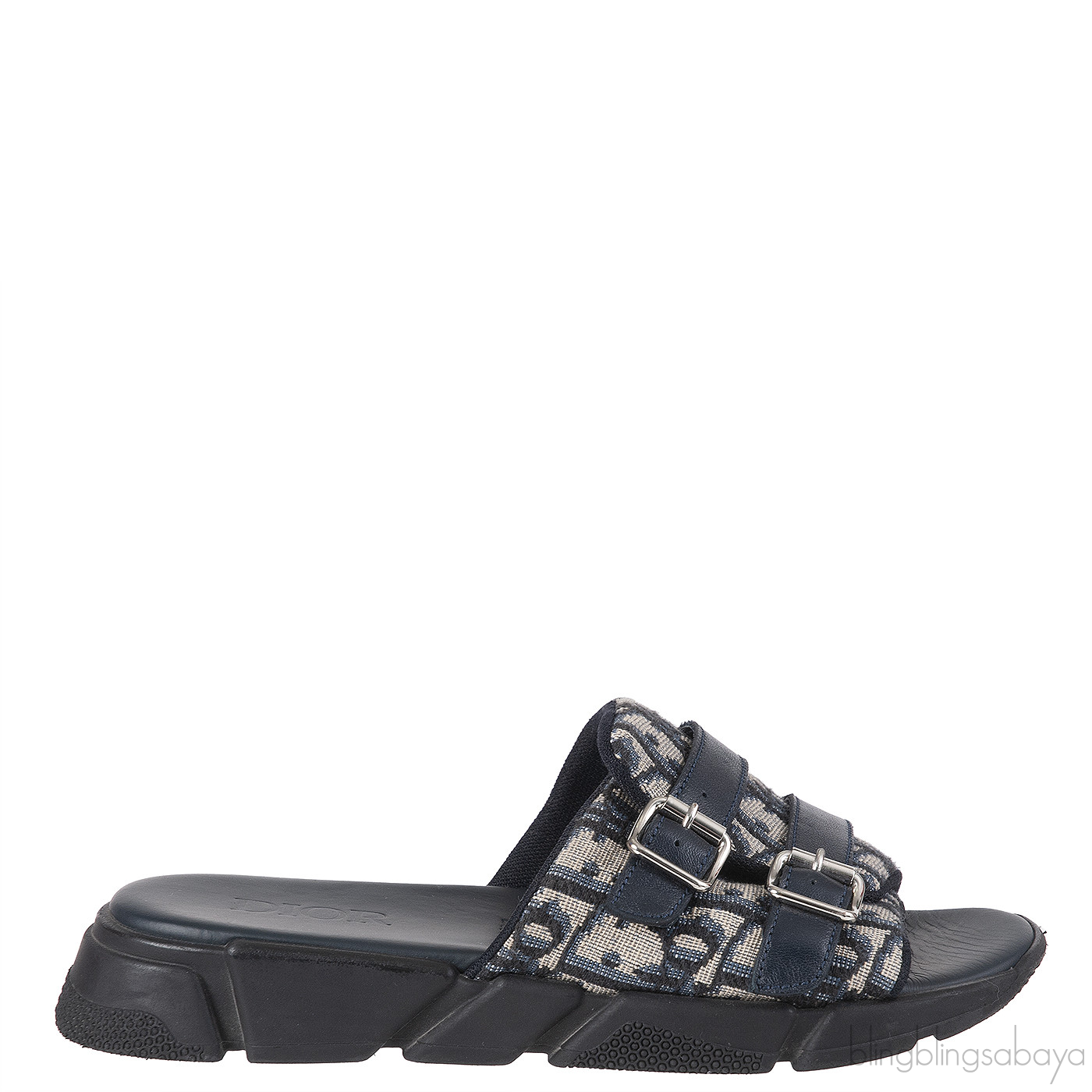 Beige and Black Dior Oblique Technical Kids Jacquard Sandals