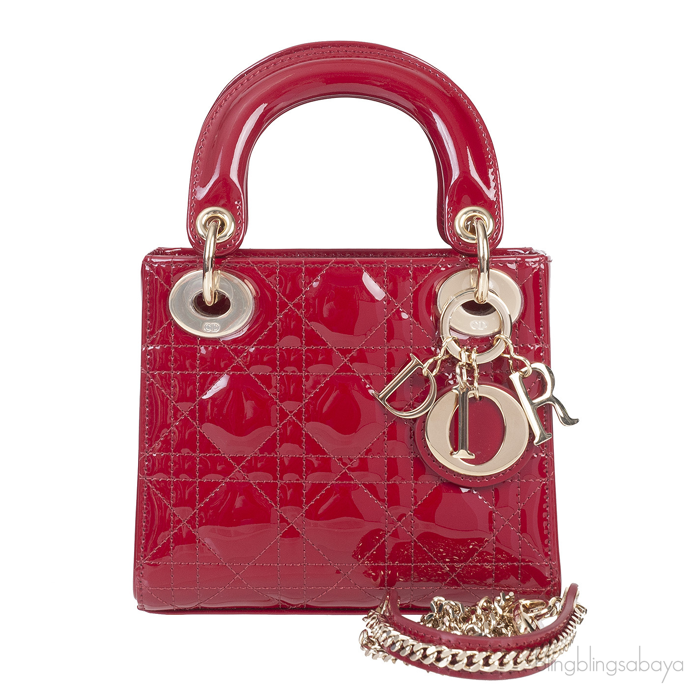 Christian Dior Lady Dior Mini Red Patent Quilted Leather GHW