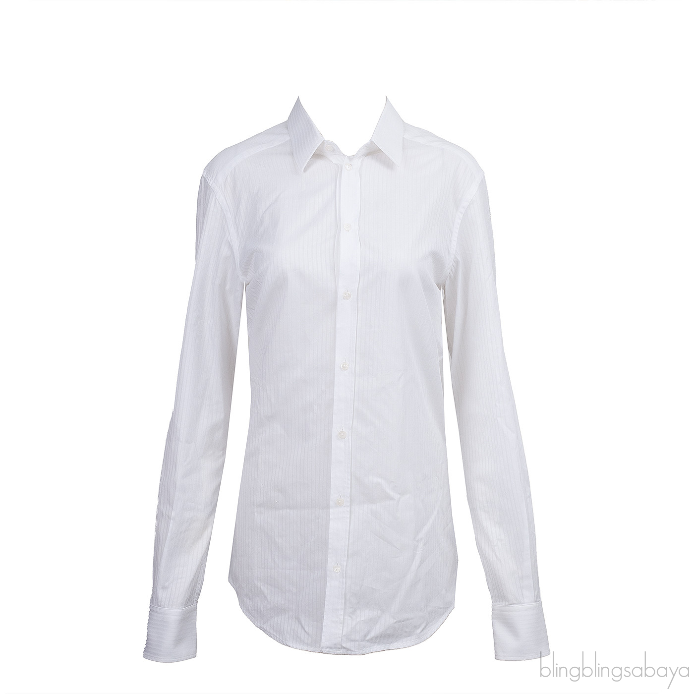Dolce & Gabbana Gold White Cotton Long Sleeve Shirt