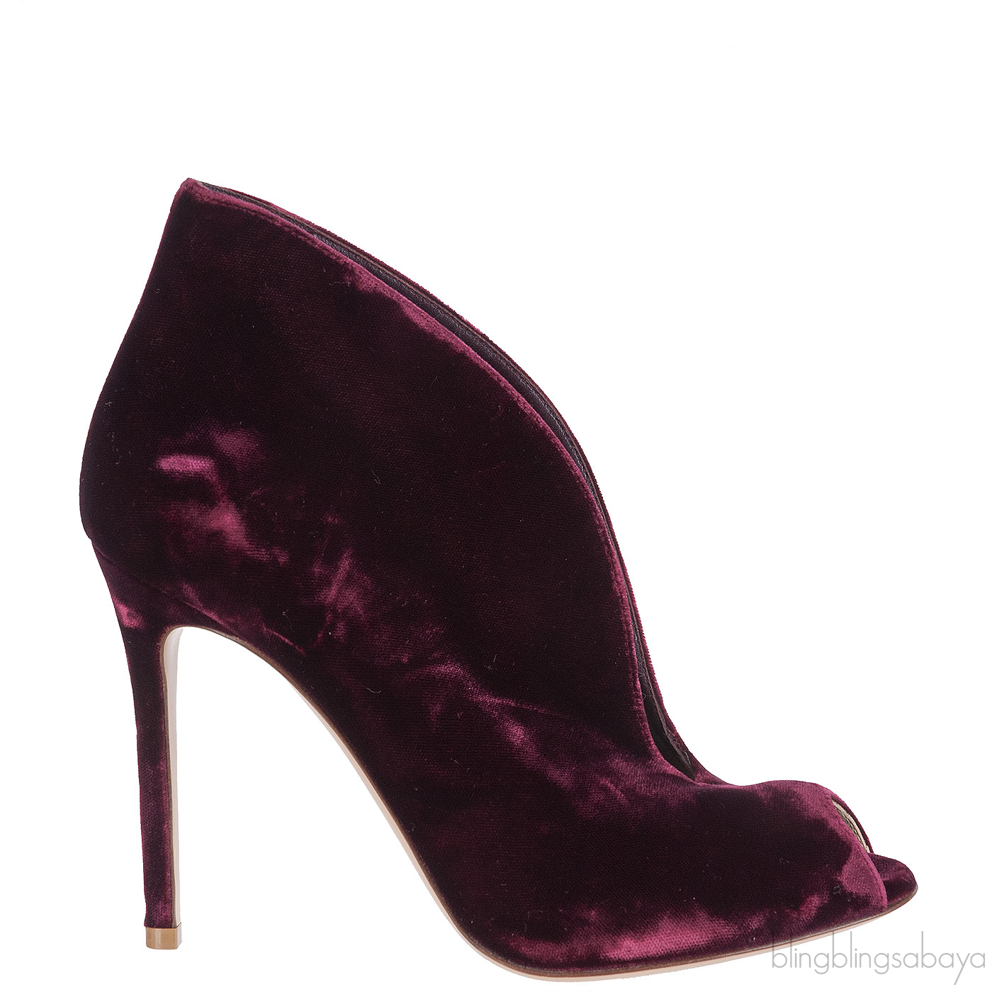 Gianvito Rossi Burgundy Velvet Ankle-Flare Boots