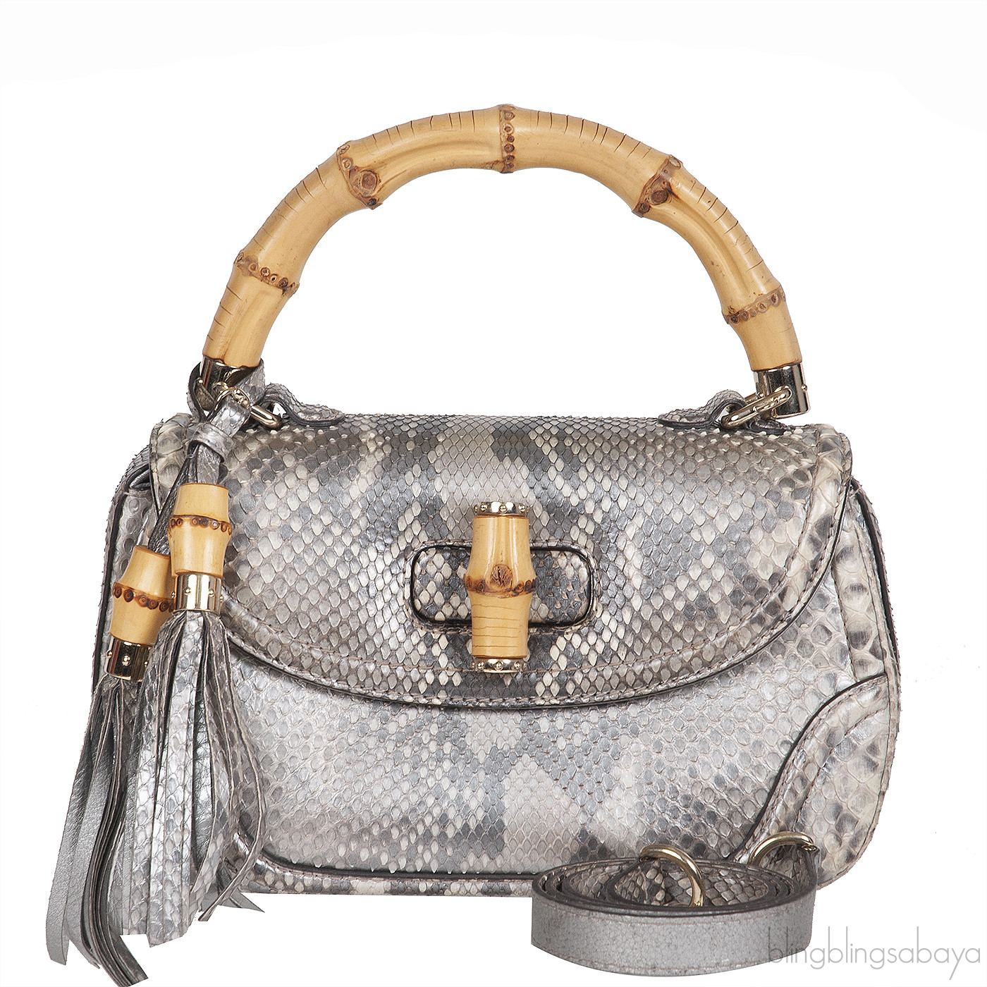 Gucci Silver Python Bamboo Handle Bag