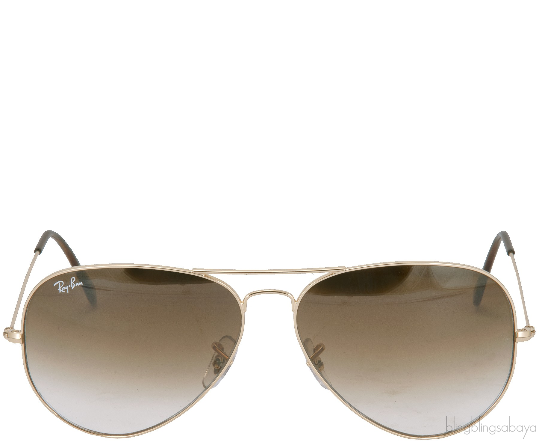 This RB 3025-001/3K Aviator Large Metal Sunglasses from Ray-ban features a gold metal frame with brown gradient lenses, nose pads and white acetate temple tips.