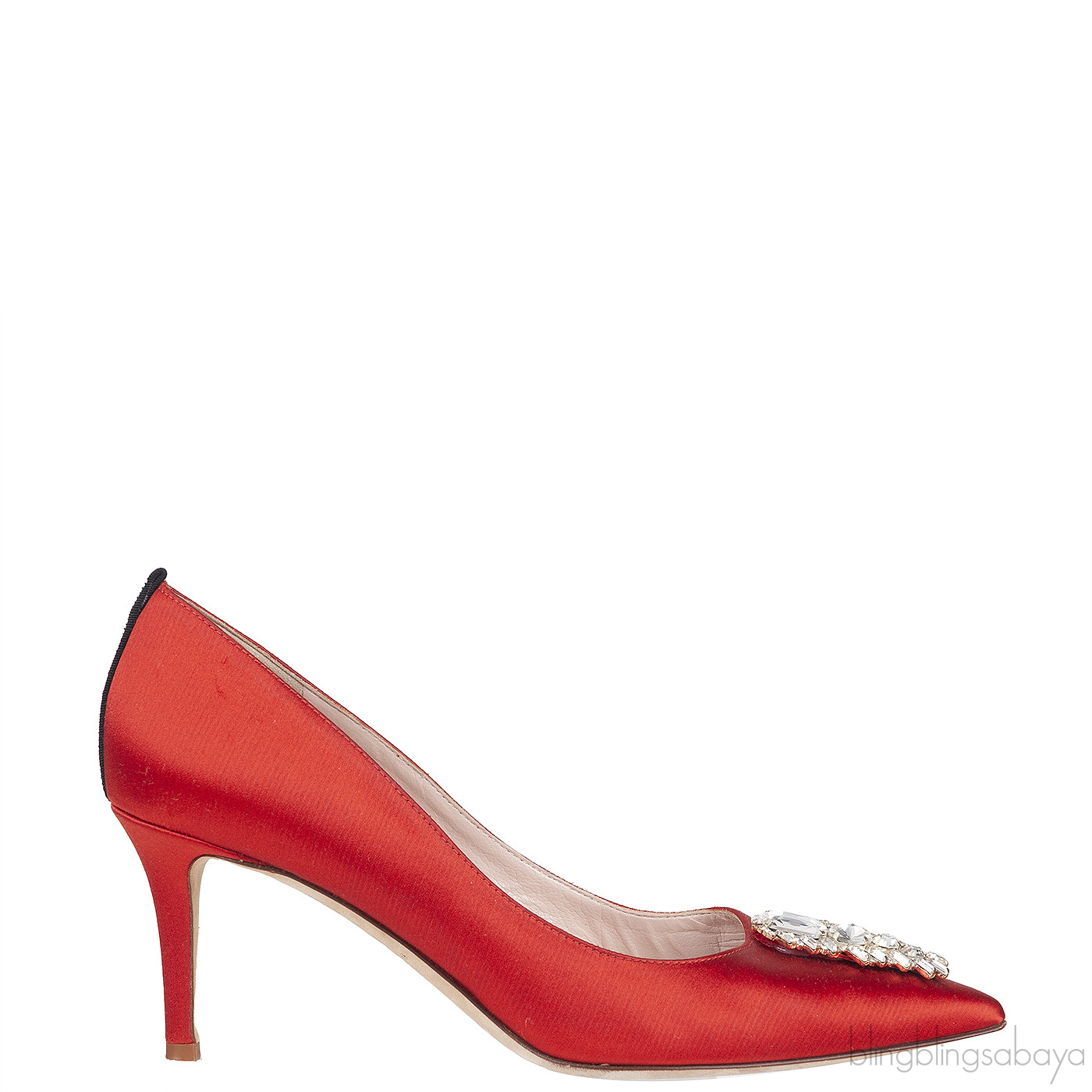 Sarah Jessica Parker Red Satin Crystal Embellished Heels