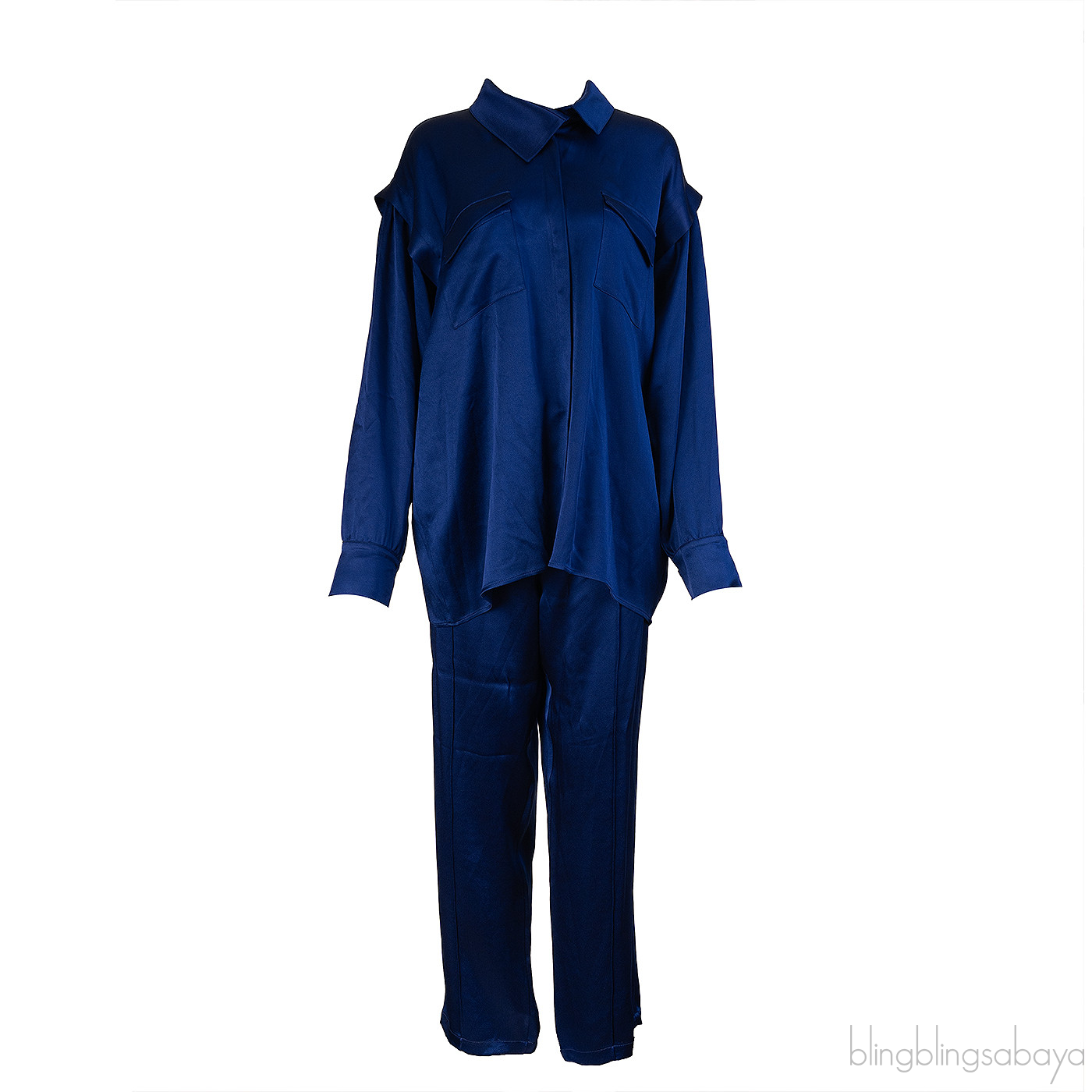 Valentine Gauthier Blue Shirt & Trouser This pair of Valentine Gauthier Blue Shirt & Trouser is crafted from acetate and viscose fabric in blue color. Top features a shawl collar, two patch pockets at front, concealed button fastening through the front, long sleeves with buttoned cuffs.Trouser features an elastic waistline with drawstring fastening, side pockets with embroidered logo.