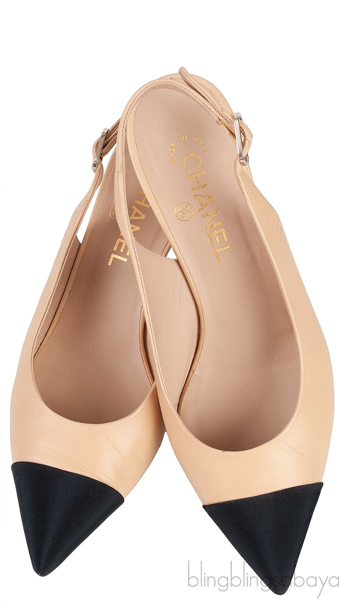 Beige Leather/Black Canvas Slingback Shoes from Chanel!
