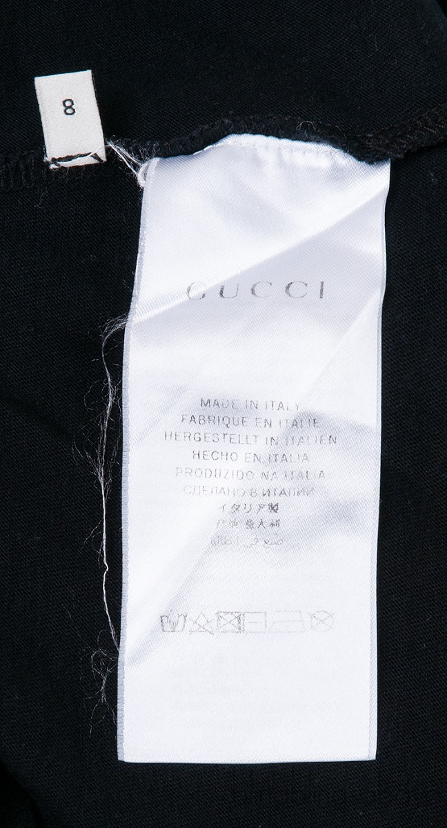 This Black Star Print Kids T-shirt from Gucci is crafted in 100% Cotton fabric in black featuring a round neckline, short sleeves, brand and star glittery print at front and pull-over.