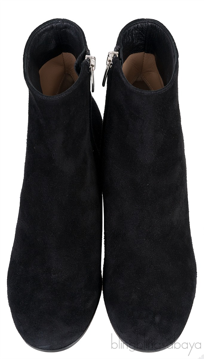 These Black Suede Ankle Boots from Gianvito Rossi are crafted from black suede leather upper and black leather lining. These boots features an almond toe, side zip fastening, leather lined insole, stacked heels measuring 60 mm and leather lined sole.