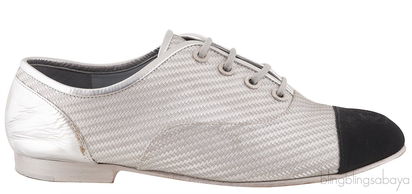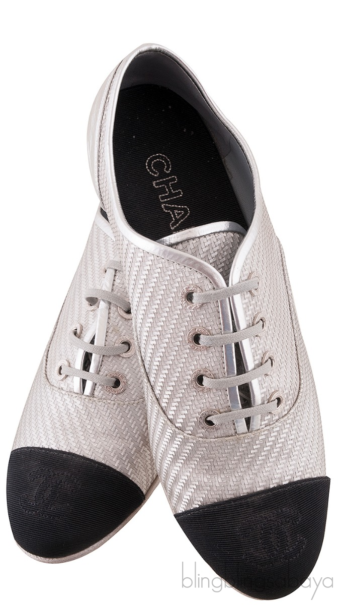 CC Silver Lace Up Cap Toe Shoes from Chanel!