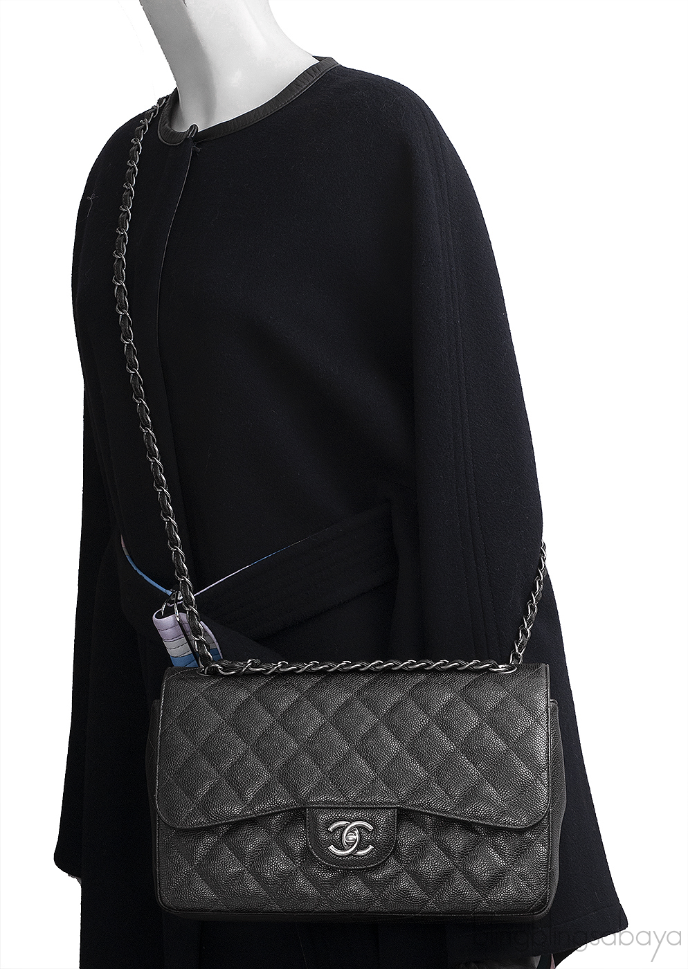 Chanel Charcoal Grey Caviar Jumbo Flap Bag