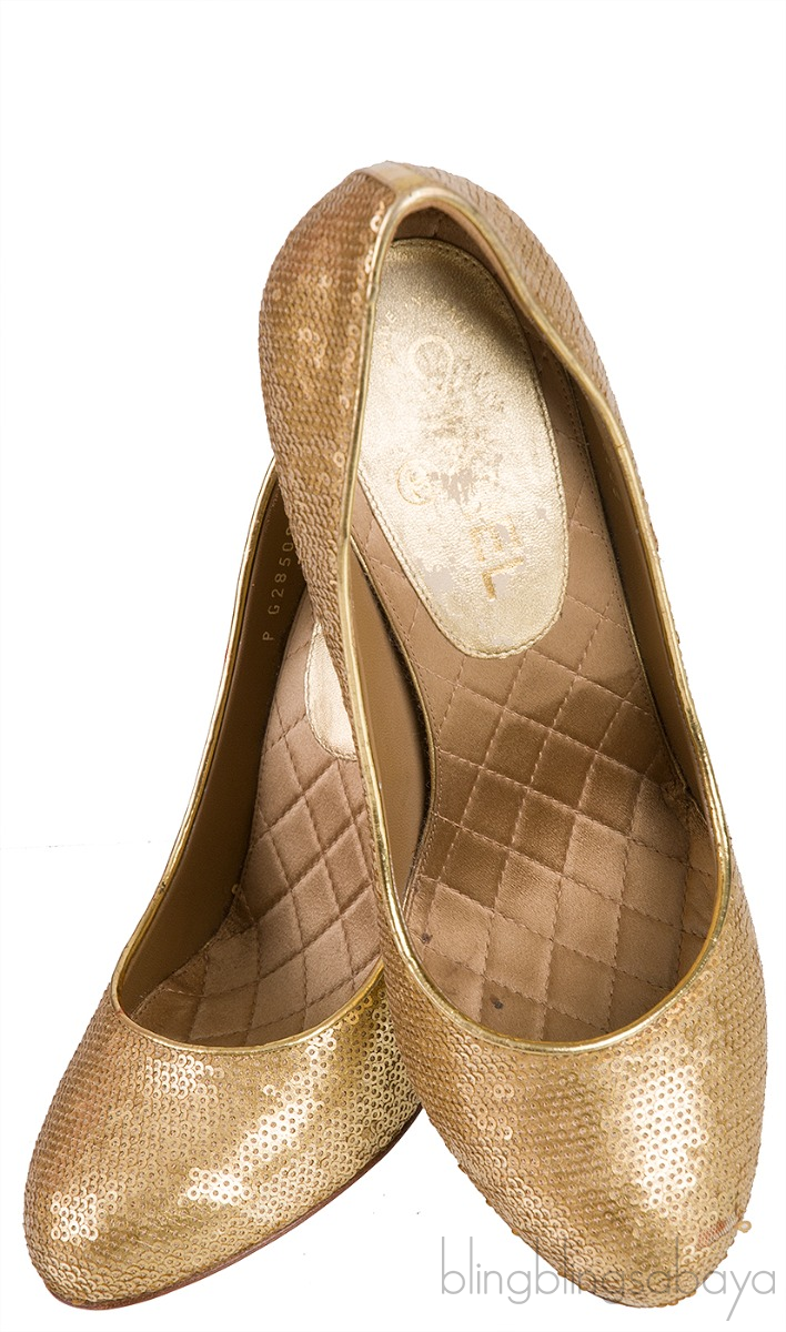 This Metallic Gold Sequin Heels from Chanel features a fully sequin embellished heels in gold with gold patent gold trimming and brown leather lining, round almond toe, quilted fabric insole, satin covered heel measuring 100 mm high, gold cc metal logo on the heel counter and leather sole.