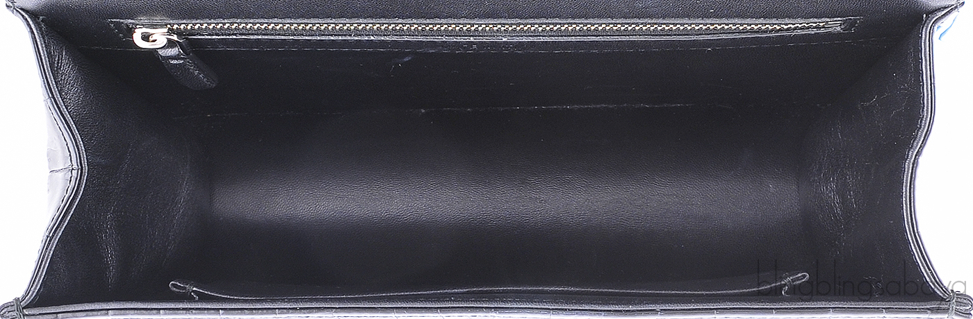 This Diorama Marquetry Crocodile Bag from Christian Dior is made of black crocodile leather with beautiful crocodile leather patchwork in torquoise and emerald green accented with palladium hard ware. This stunning shoulder bag features a crest shape clasp in silver tone metal at flap cover. This bag has a long chain red shoulder strap with open work and engraved links. Interior is fully lined with black leather revealing a roomy interior with one zip pocket and open patch compartment.