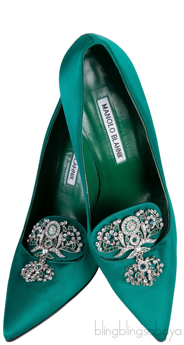 Emerald Green Crystal Satin Heels from Manolo Blahnik!