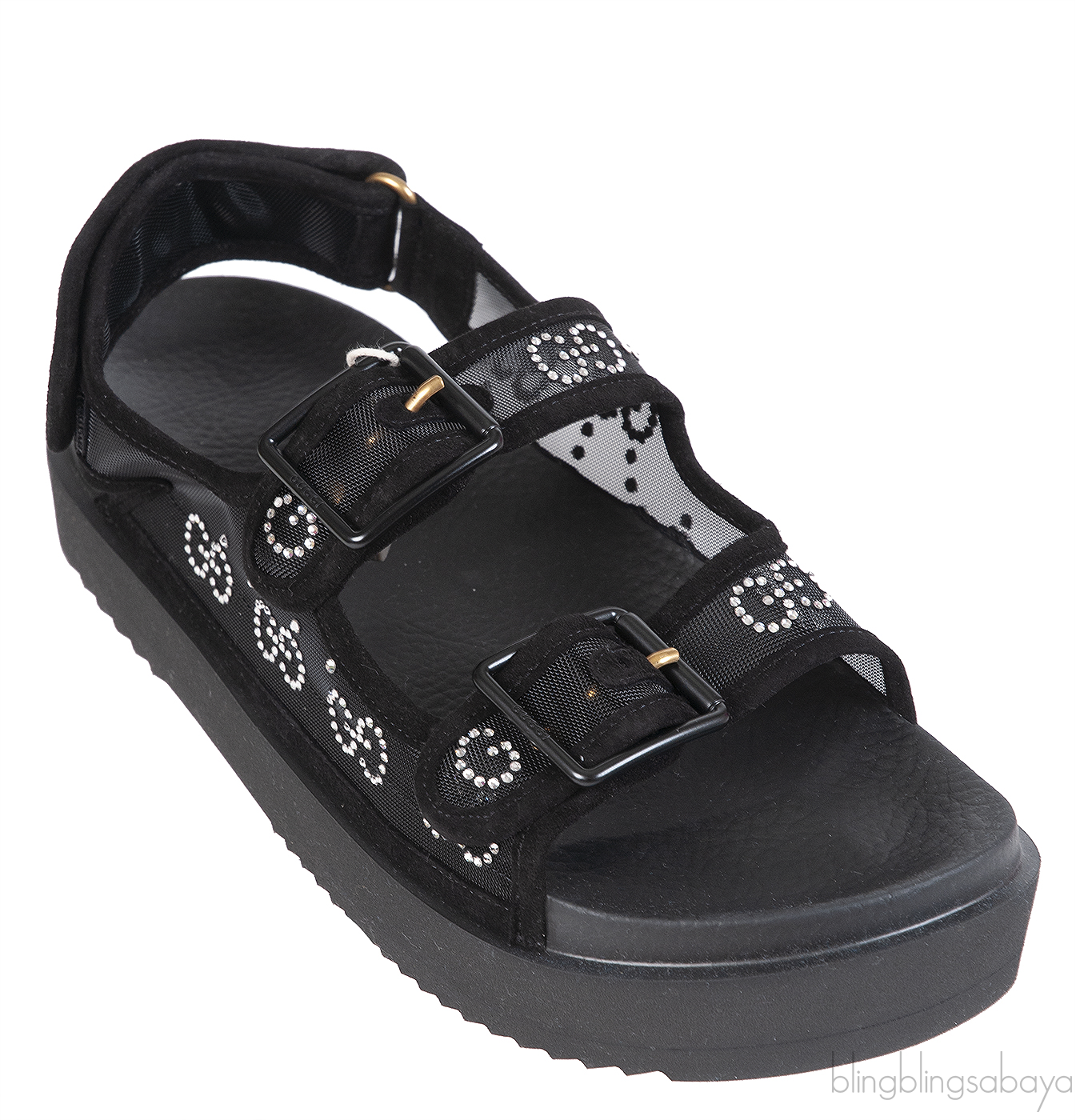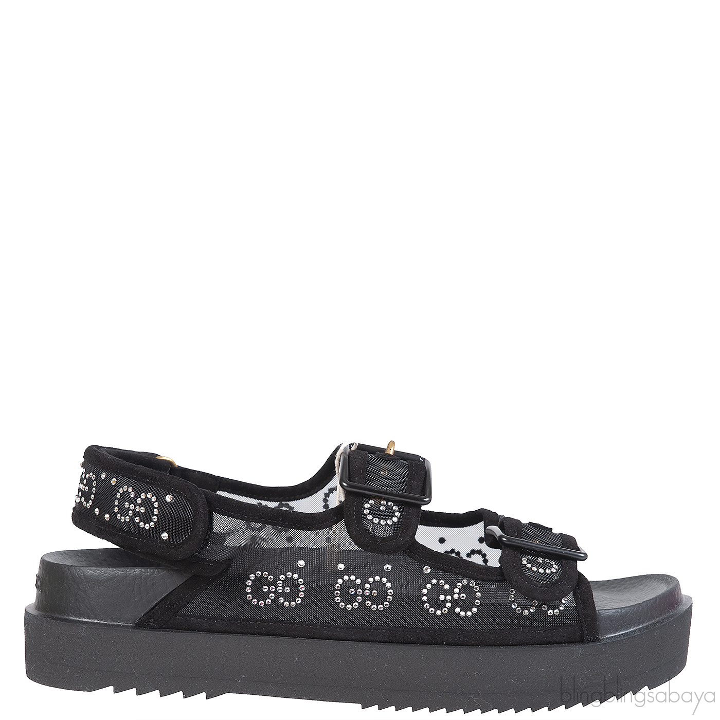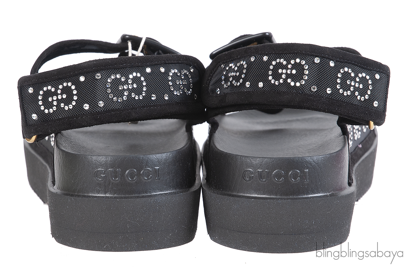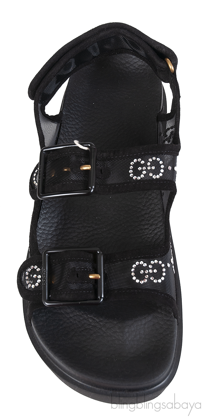 Gucci Black Crystal Embellished Monogram Pattern Sandals!