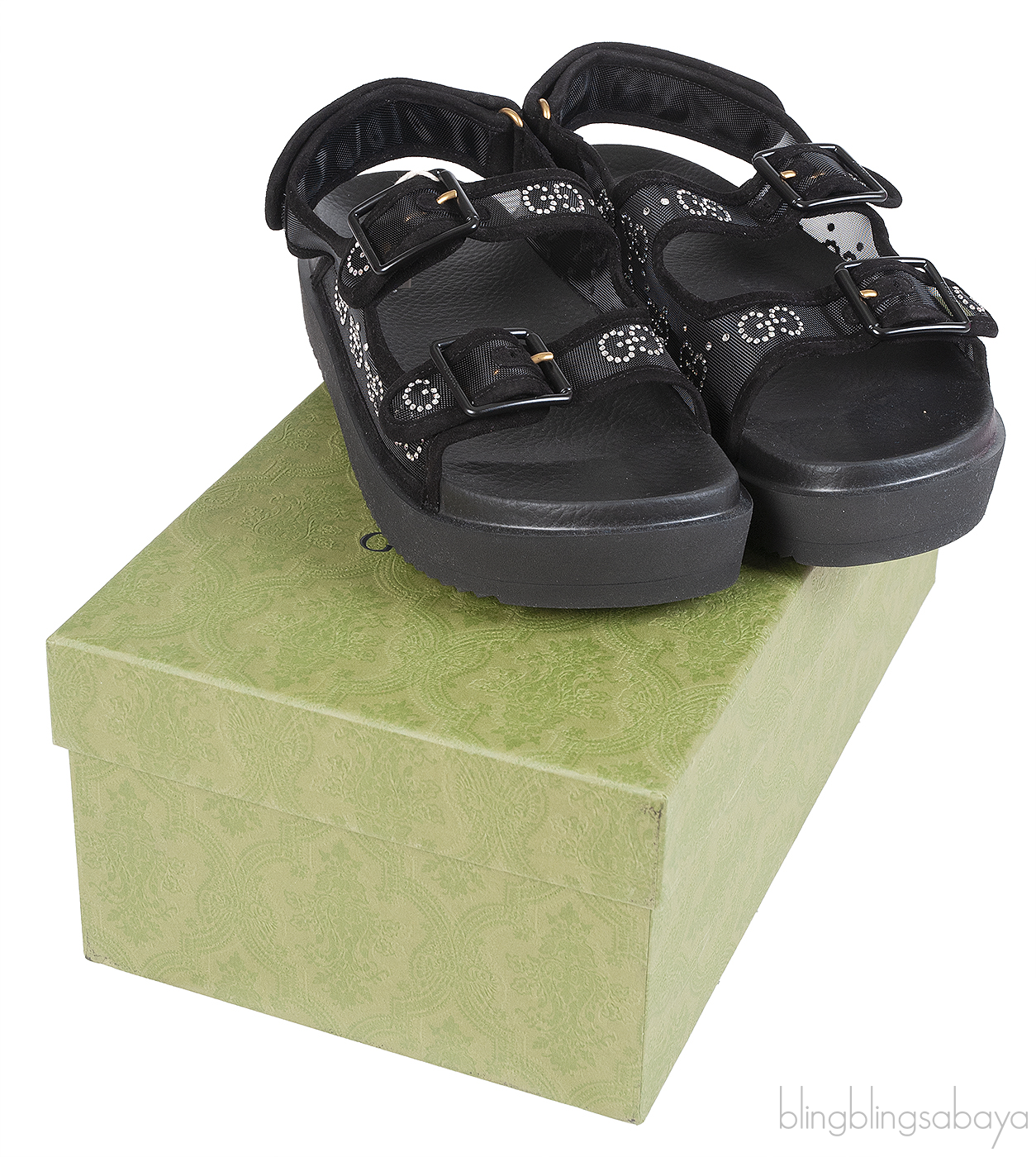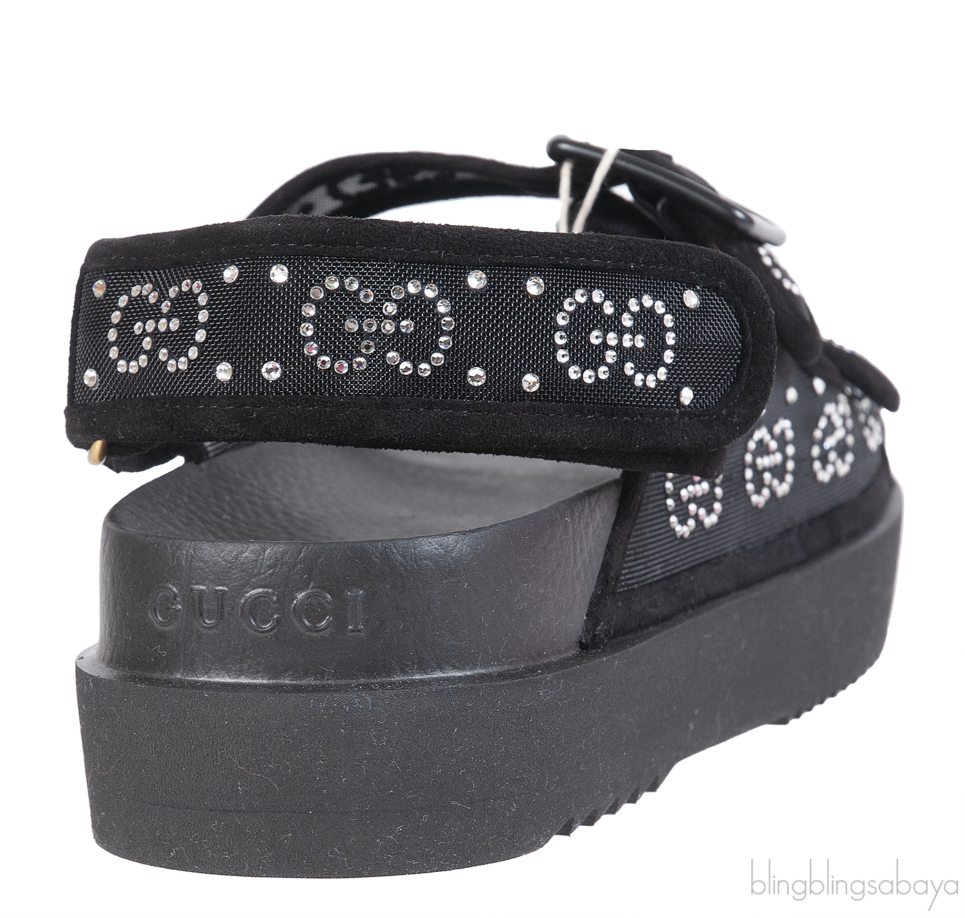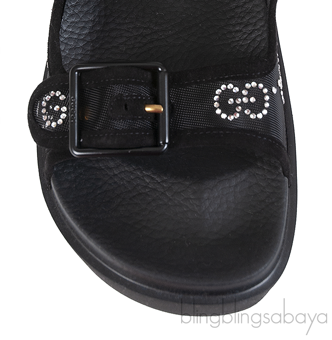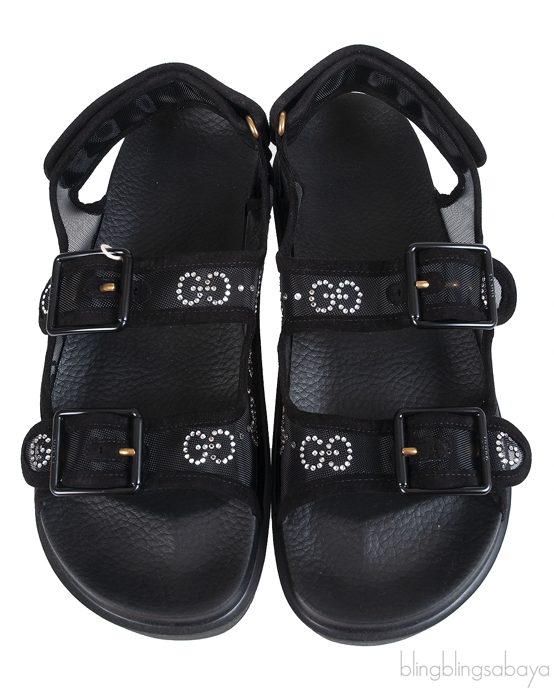 Gucci Black Crystal Embellished Monogram Pattern Sandals!