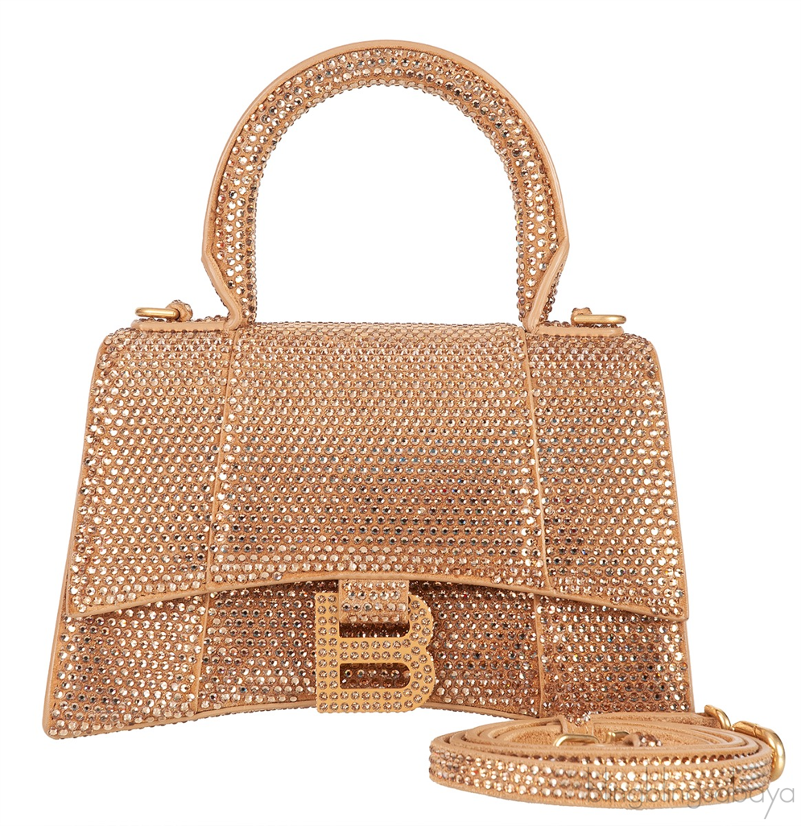 Hourglass XS Gold Rhinestone Suede Calfskin from Balenciaga!