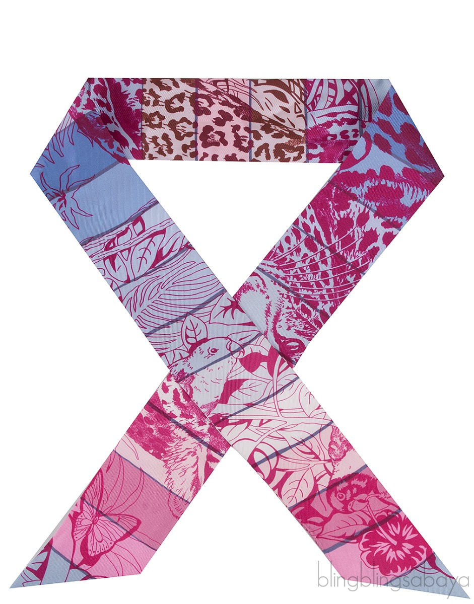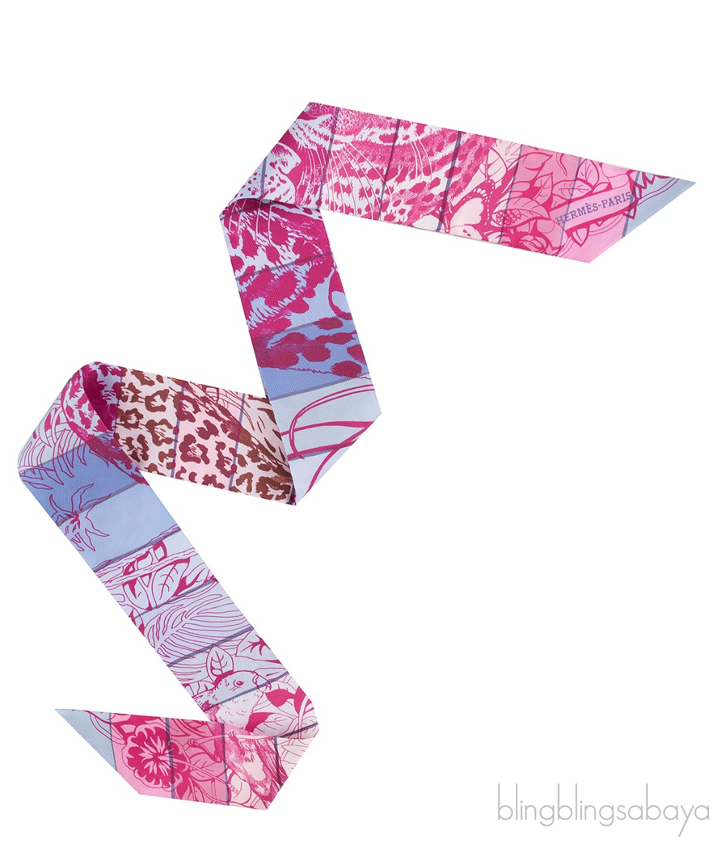 This Jungle Love Rainbow Twilly from Hermes is crafted from 100% Silk fabric featuring a jungle print in multicolor hue.