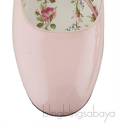 These pretty Lois Bee Mary Jane Pump from Gucci are crafted from light pink patent leather upper with floral print leather lining. These lovely heels features a round almond toe, strap across the front adorned with a bee with a faux pearl and GG emblem and chunky heels measuring 75 mm high.