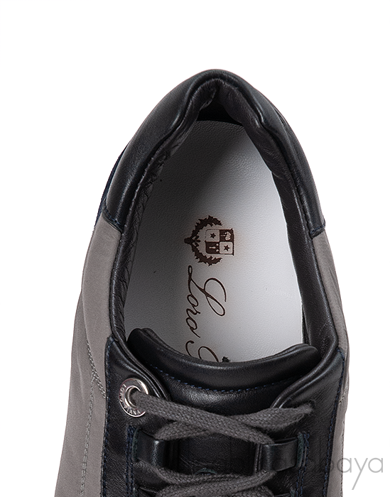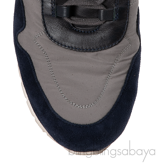 These stunning and sophisticated My Wind Microfibre & Suede Sneaker from Loro Piana are crafted from a microfibre treated with Storm System® for a waterproof, wind-resistant finish. This sneaker features a tri-color upper dark blue, grey and black calfskin trim, the light palette is finished with a single Bordeaux line and the house\'s logo embossed to the heel.
