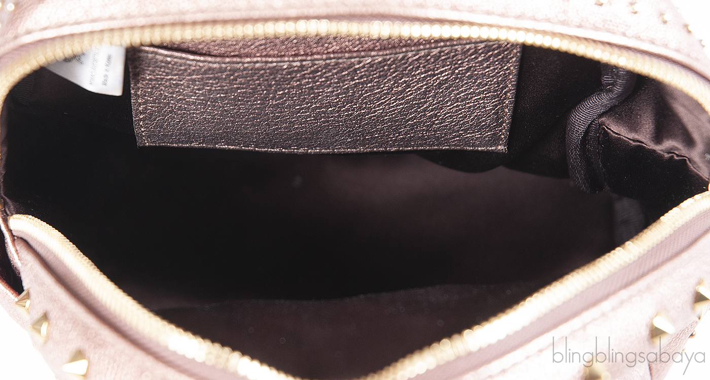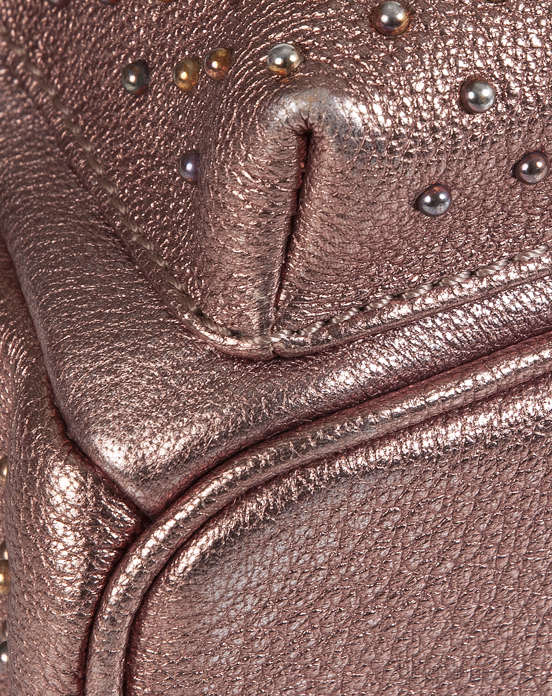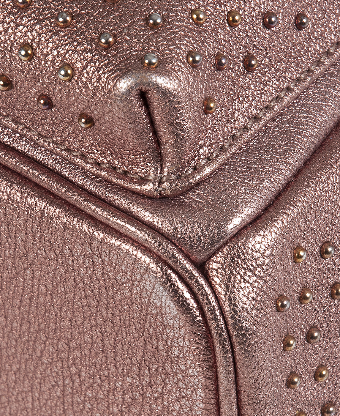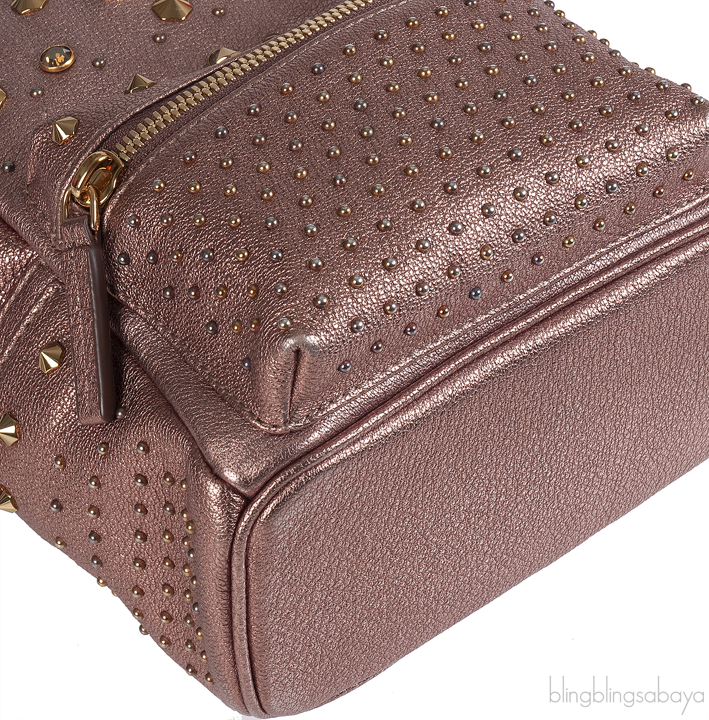 This cute and fabulous Metallic Leather Studded Backpack from MCM is crafted from metallic leather accented with the gold hardware. This chic mini bag is embellished with gold crystals and studs and gold logo metal plate at front.