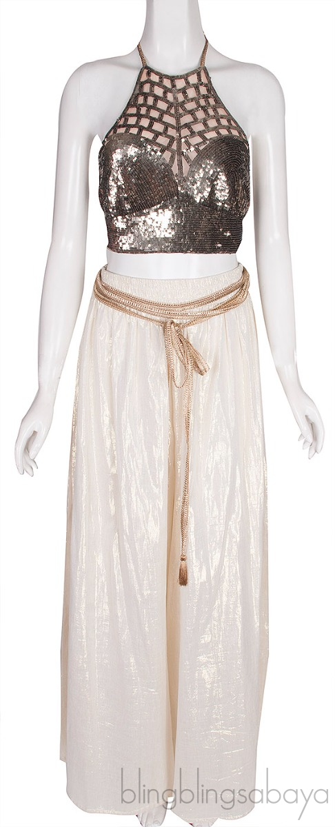 Metallic Wide Leg Trouser & Sequin Halter Top from Miguelina!