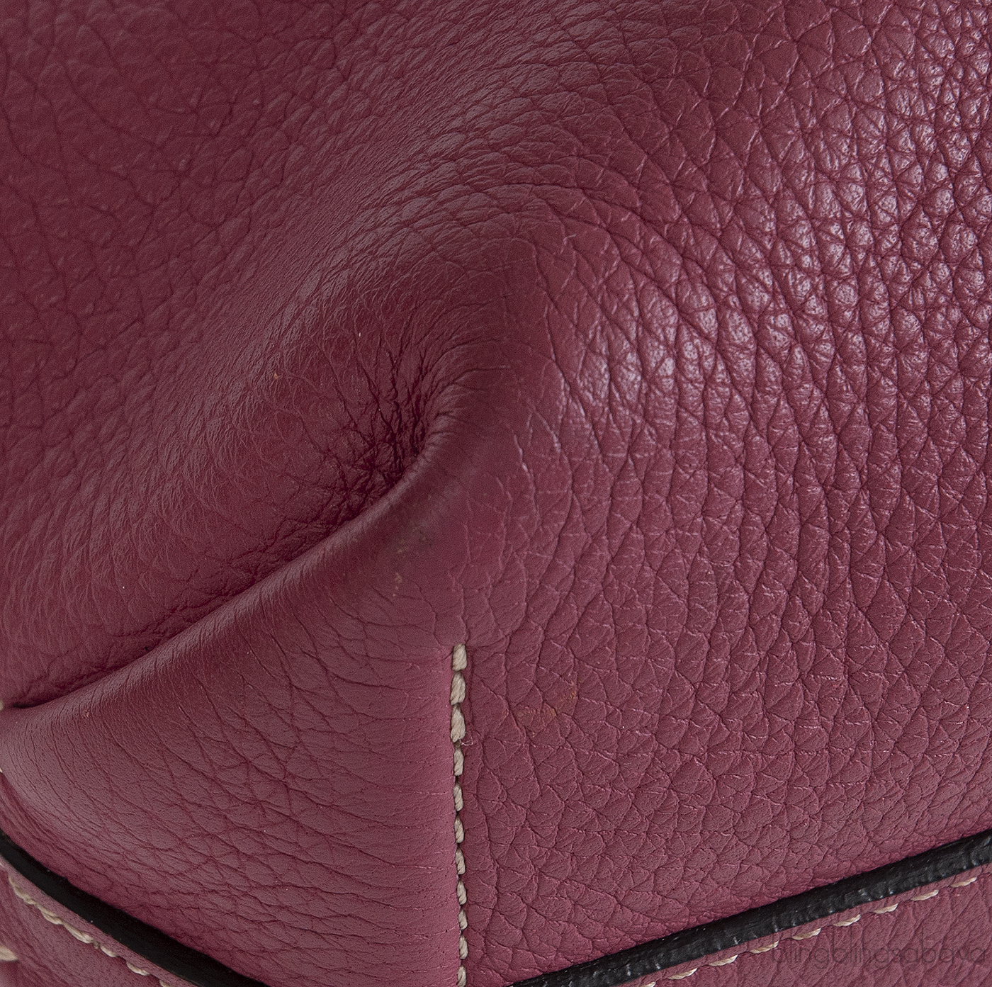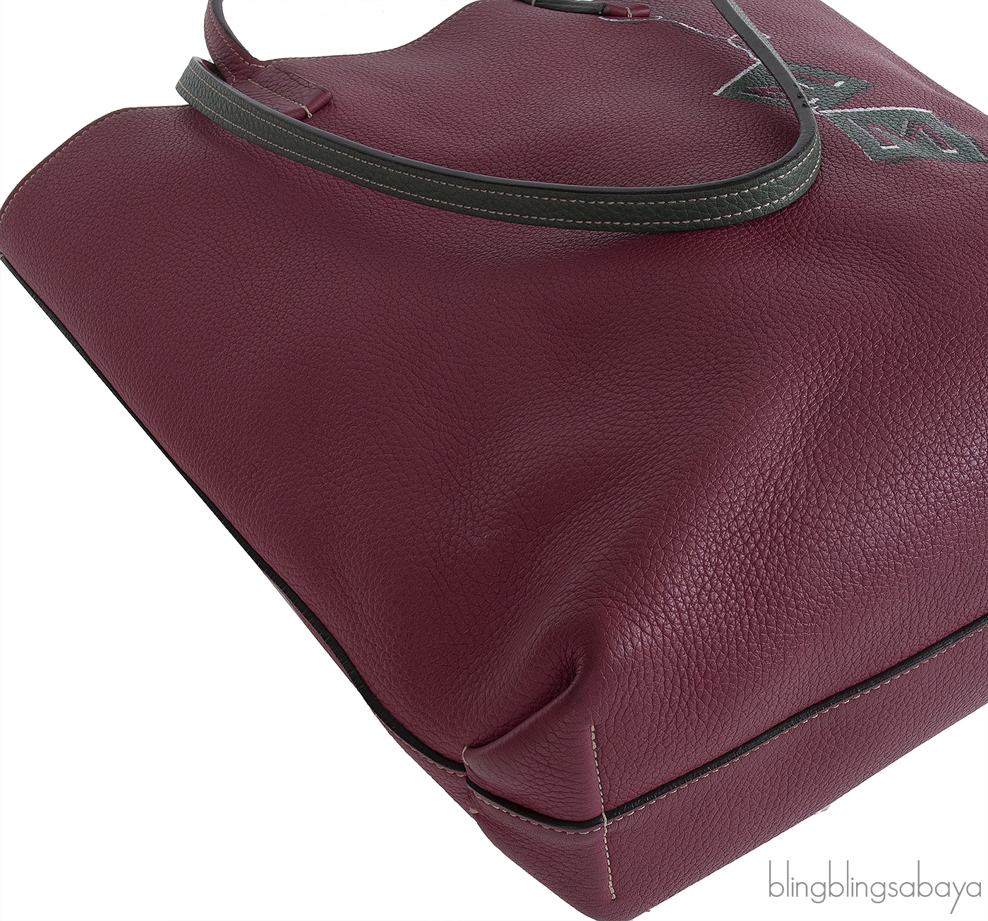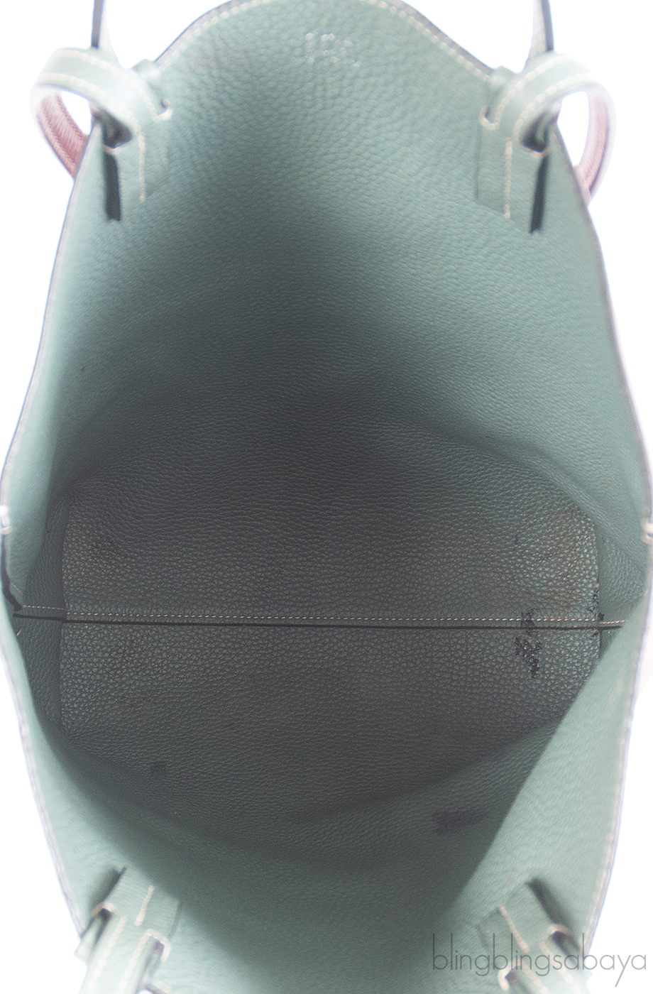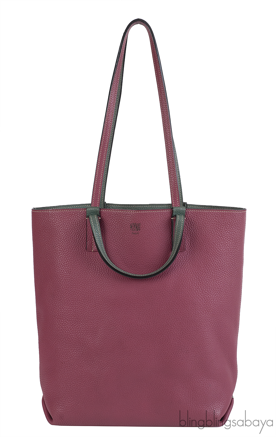 This Quattro Reversible Bi-color Leather Tote from Moynat is crafted from Taurillon Gex leather in bi-color hue. Featuring a burgundy tote with dark green hue in reverse with two optional straps for shoulder or hand carry.
