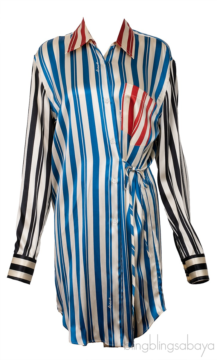 This Multicolor Stripe Wrap Shirt from Loewe is crafted in 100% Silk in multicolor stripe print. This shirt features a pointed collar, button fastening through the front, long sleeves with buttoned cuffs, oval hemline, pocket at left chest and self-tie fastening at waist.