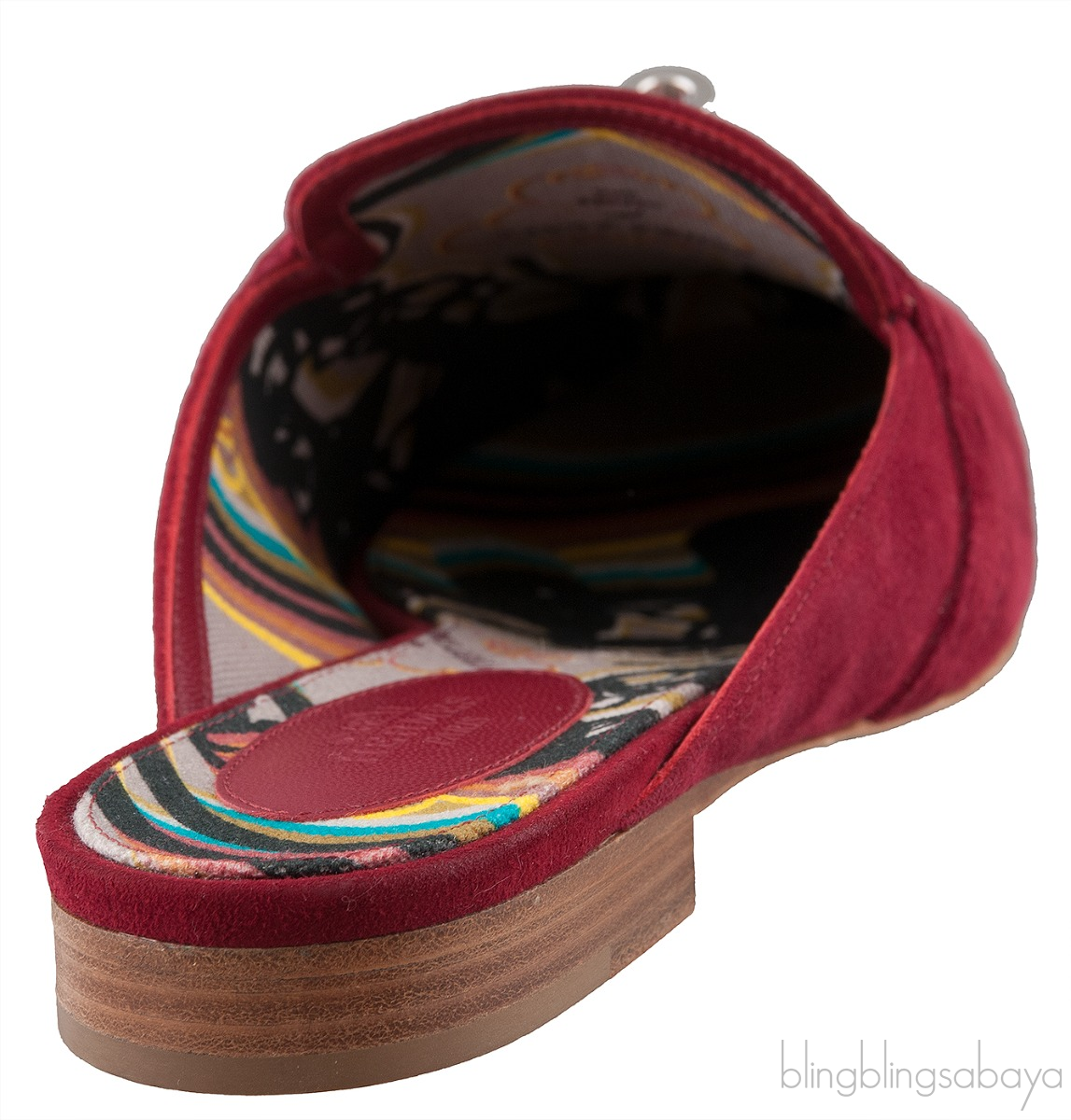 This Oz Suede Bordeaux Mule from Hermes is crafted from burgundy suede leather upper with leather lining. These mule features a round toe, with iconic palladium plated Kelly buckle., slip on, printed insole and lining, leather sole.