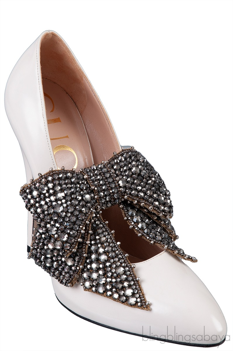 White Patent Elaisa Crystal Bow Pump from Gucci!