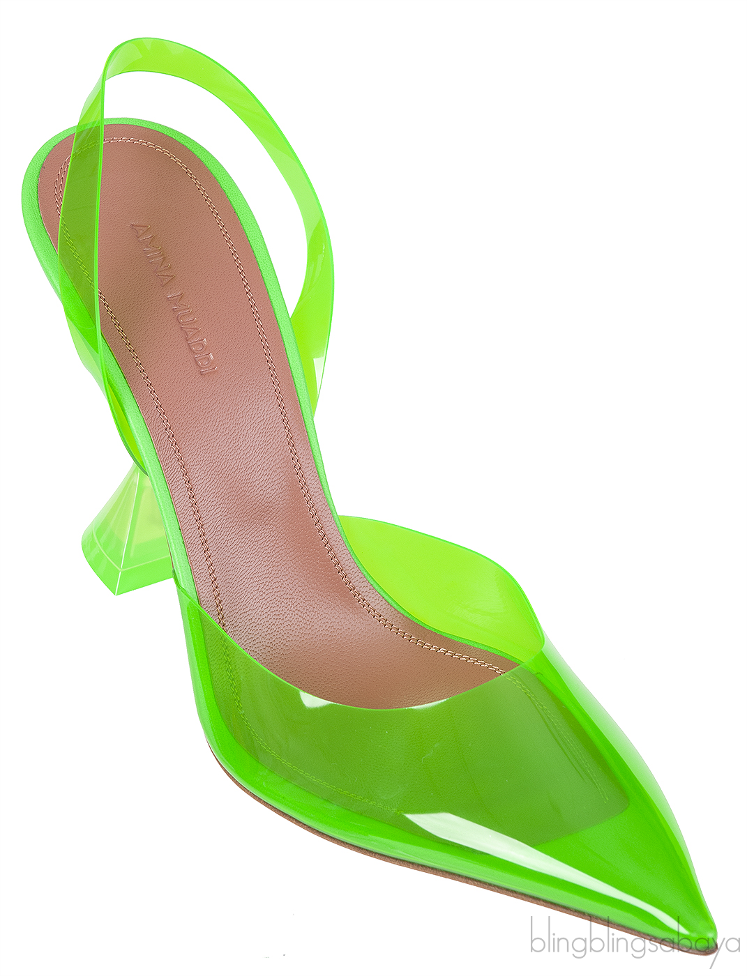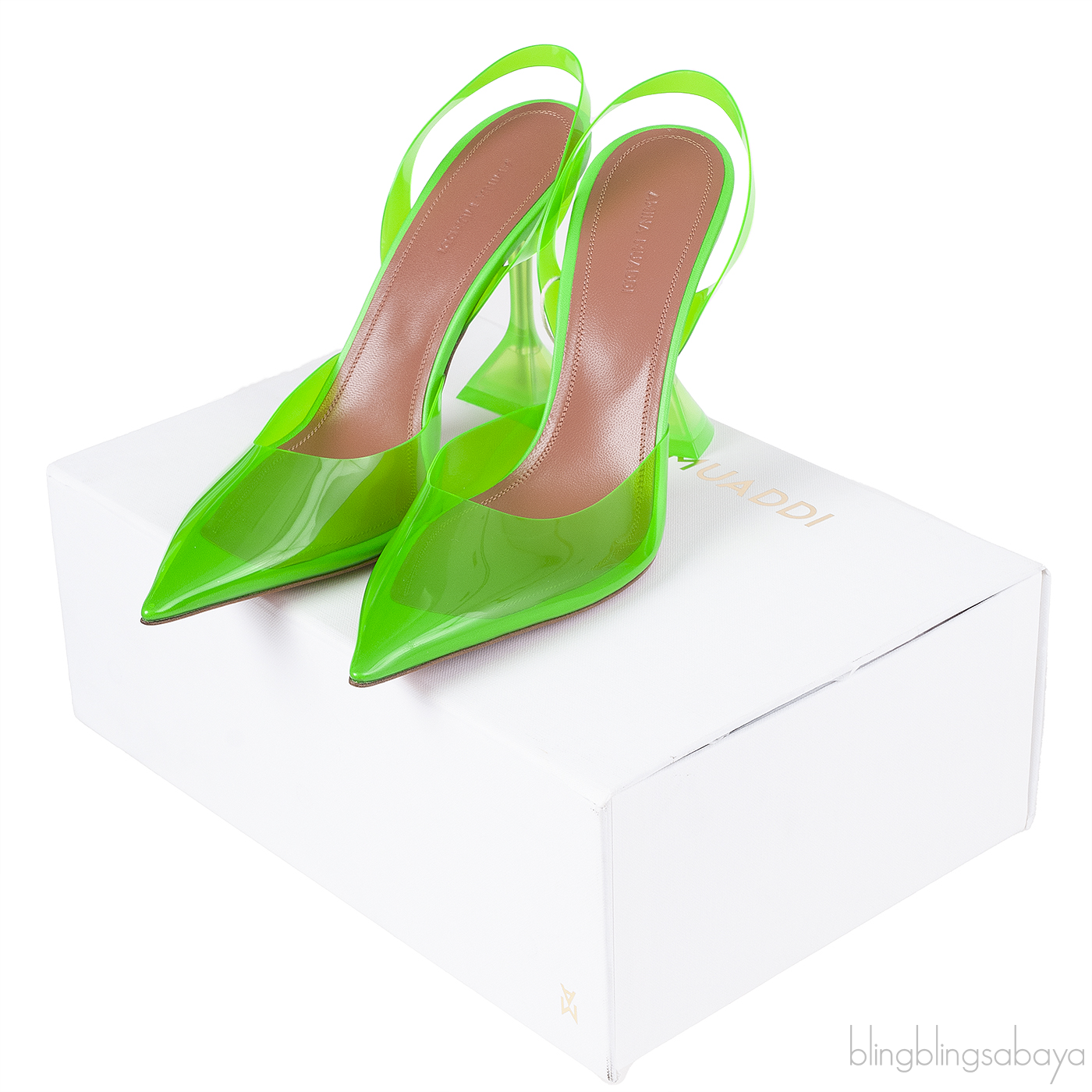 AMINA MUADDI Holli 95 PVC Glass Green Slingback Pumps