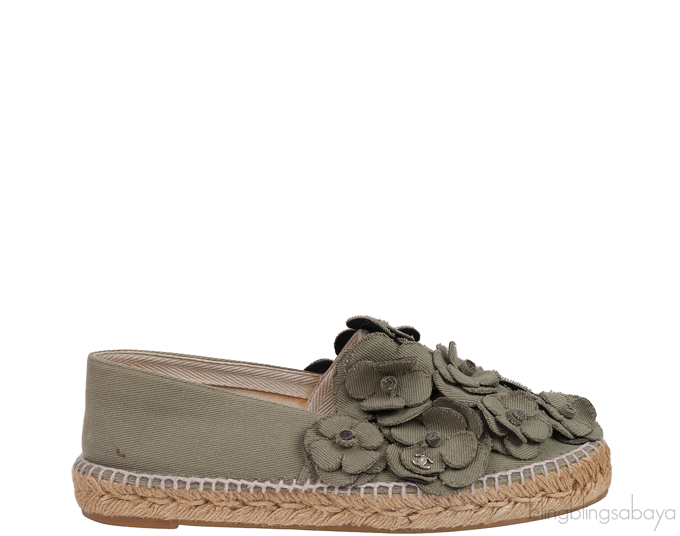 Army Green Camellia Canvas Espadrille from Chanel!