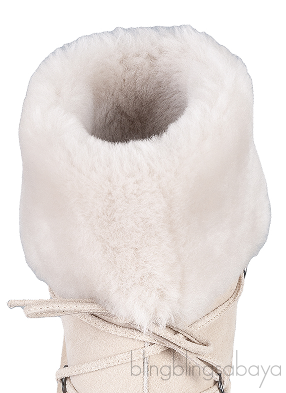 Beige Suede Fur Trim Flat Boots from Weekend Max Mara!