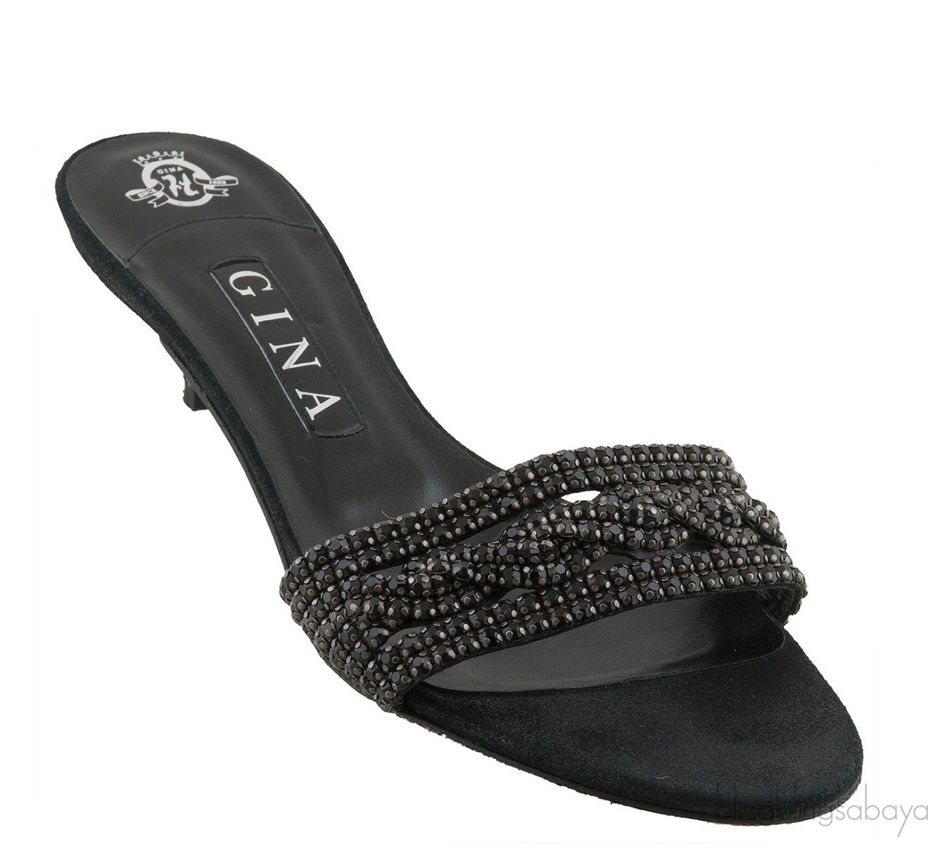These Black Crystal Mule Sandals from Gina is crafted from black leather. These sandals features a vamp fully embellished with black crystals, black leather insole, leather sole and mini kitten heels.