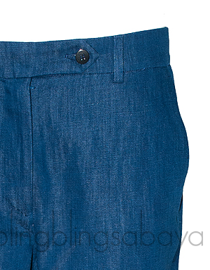 This Blue Denim Jeans from Franck Namani is made from 70% Cotton & 30% Linen. This trouser features a zip and button fastening at front, belt loops, side pockets at front, welt button pockets at rear and small slits at hem.
