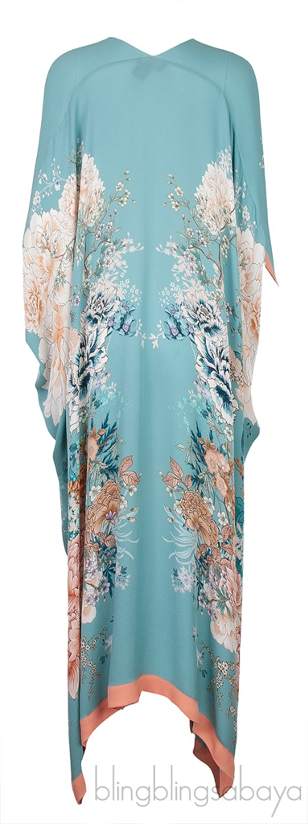Blue Floral Print Silk Kaftan Dress from Meng!