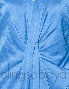 This Blue Gathered Front Dress from Lanvin is made of 75% Viscose and 25% Wool in plain blue featuring a deep V-neckline, cap sleeves, gathered detailing a front, maxi length with long slits at front.