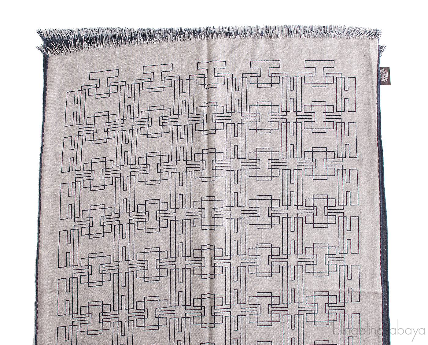 This Blue Grey Reversible H Print Shawl from Hermes is made of ultra-soft blue and grey fabric composed of 70% Cashmere and 30% Silk in "H" print scarf.