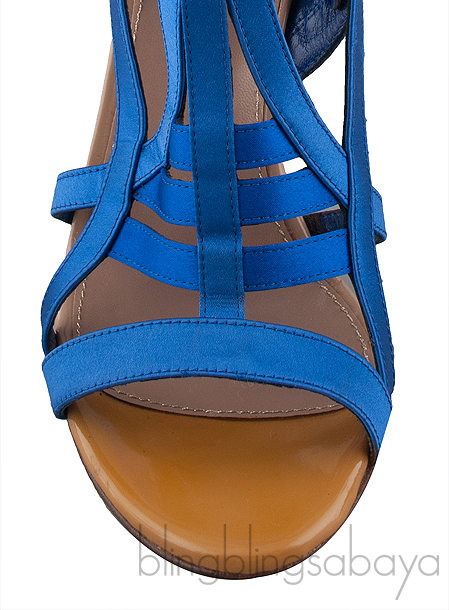 These Blue Satin Strappy Heels from Sergio Rossi is crafted in blue strappy satin upper with blue leather lining. Featuring a gladiator style with side zip fastening, metallic gold covered heel measuring 90 mm high, leatherlined insole and and sole.