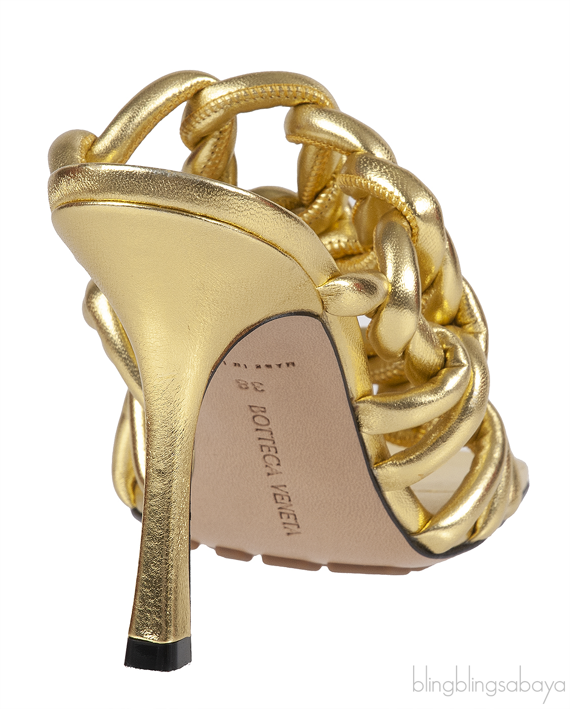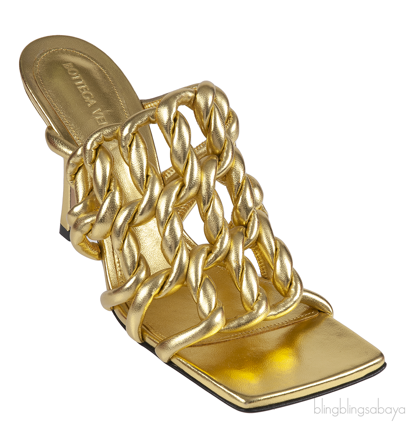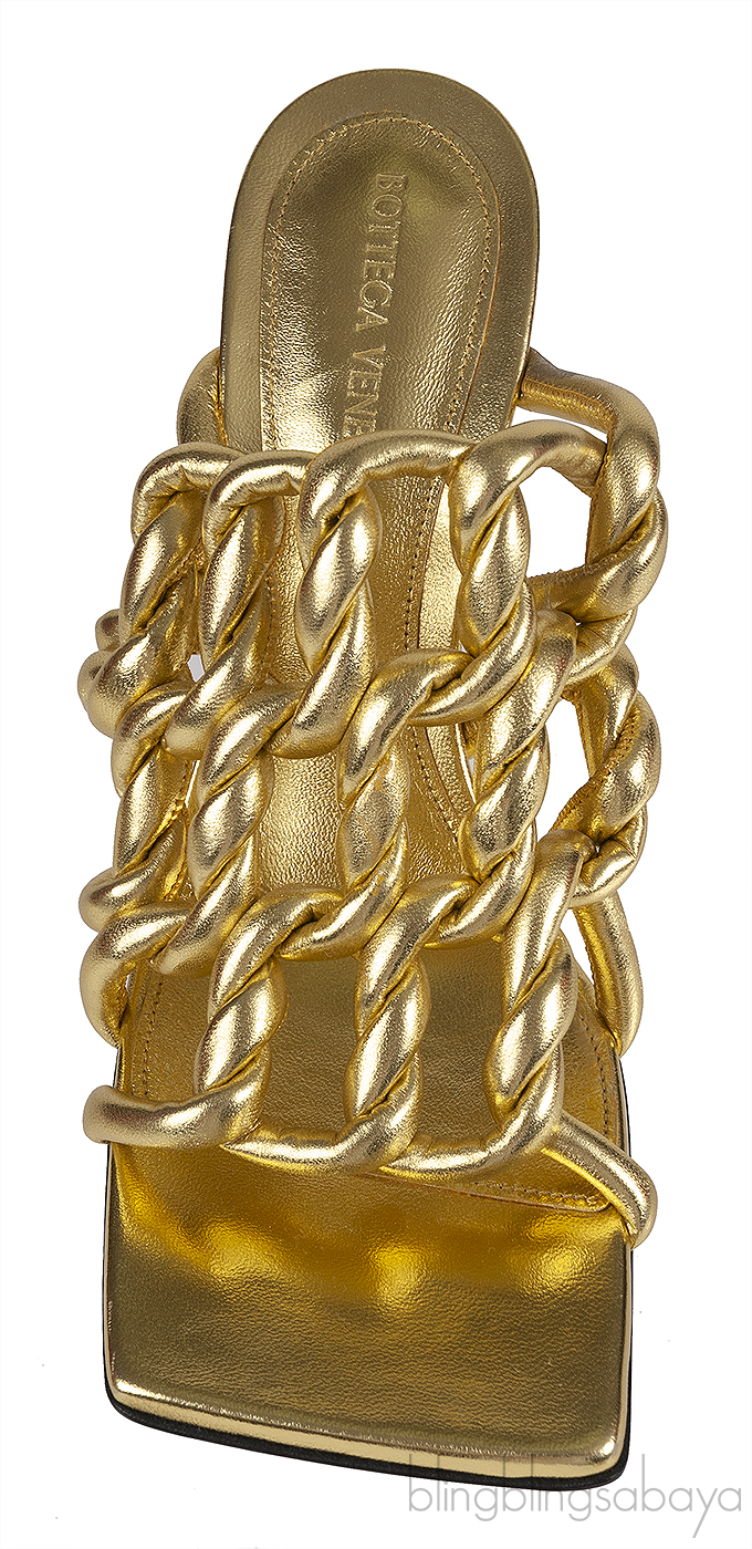 Bottega Veneta Metallic Gold Reflection Weave Square Toe Sandals