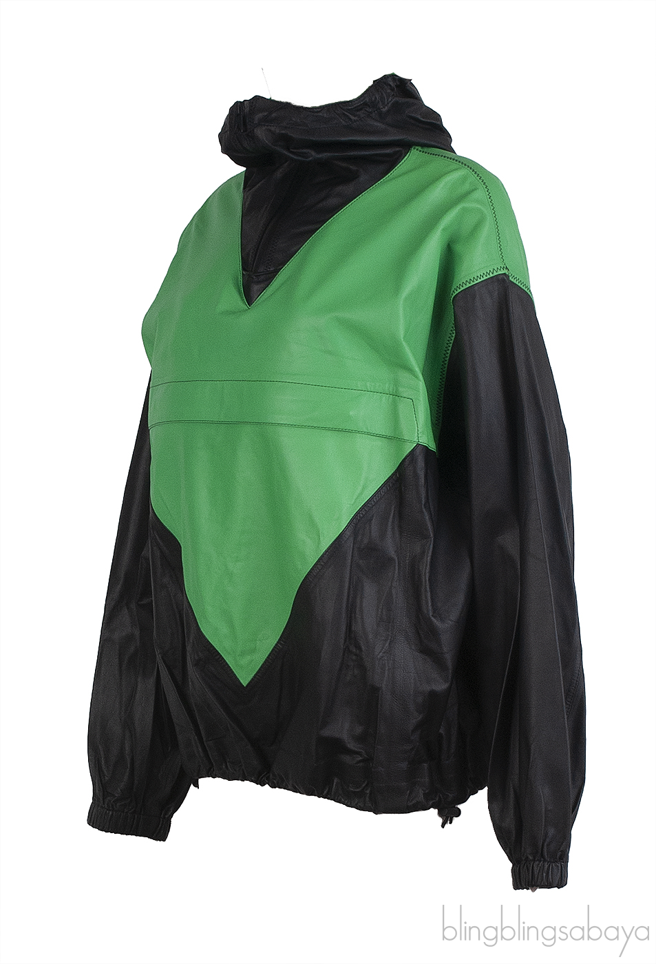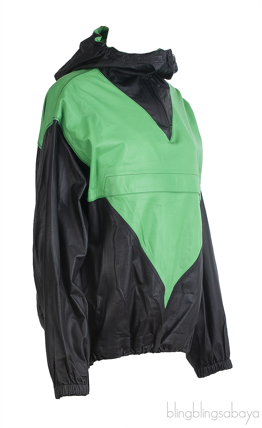 This Bottega Veneta Two-tone Blouson Matte Waterproof Calf Jacket is crafted from 100% calf leather in black and green. This blouson jacket features a waterproof finishing, a drawstring hem, and a roomy front zip pocket, it’s both stylish and functional. Offset its relaxed cut with the collection’s sleek skinny pants.