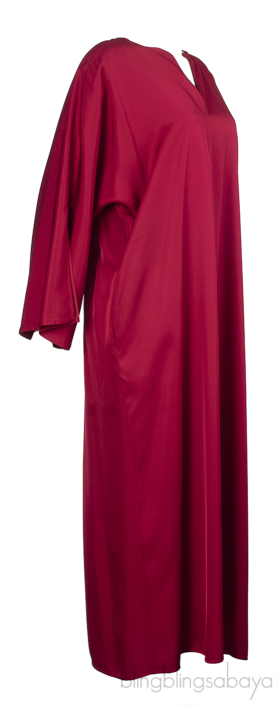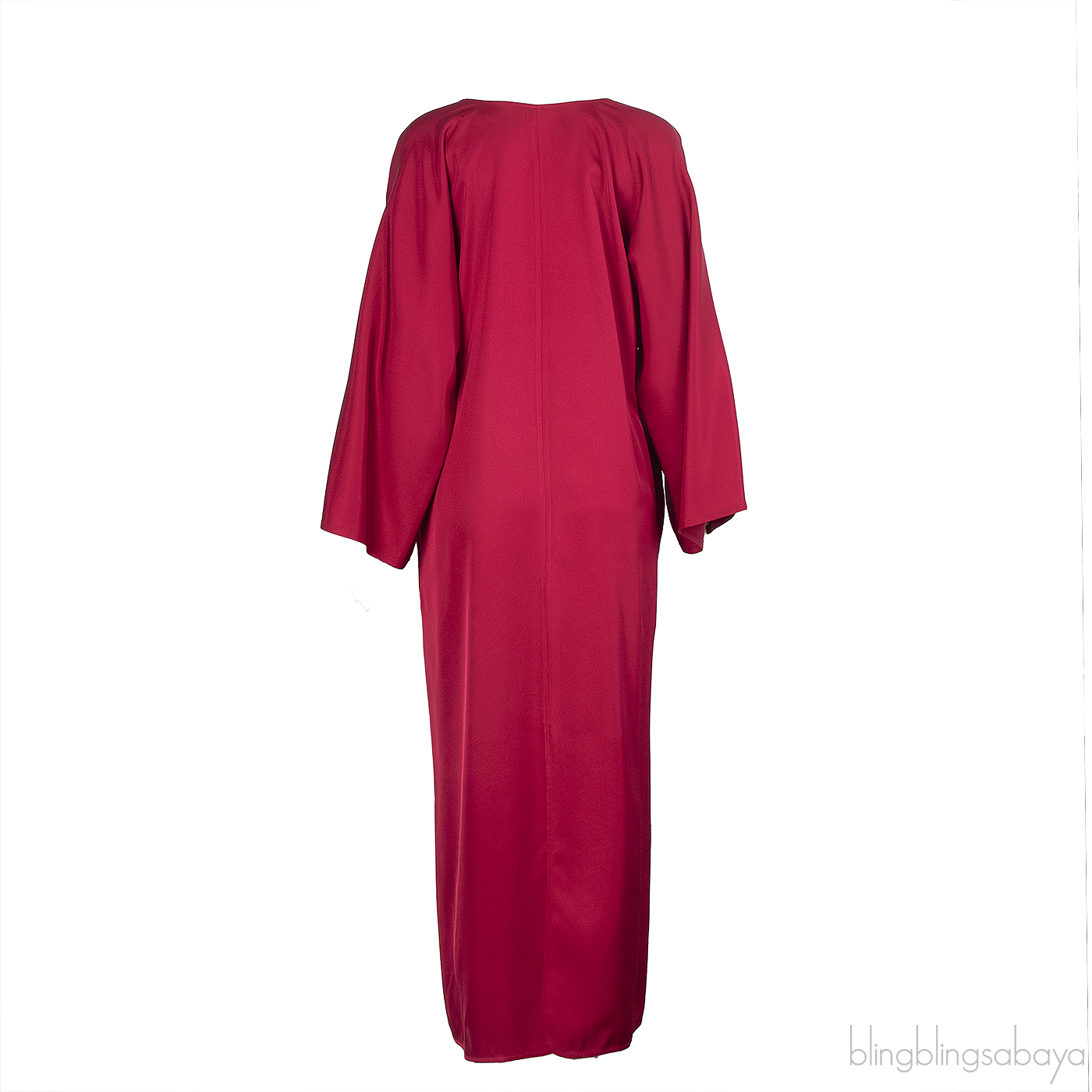 This By Malene Birger Burgundy Caftan Dress is crafted from 100% Acetate fabric in burgundy hue. This dress features a v-neckline, long caftan sleeve, oversize design, pull-over, side slit and mid-length hem.