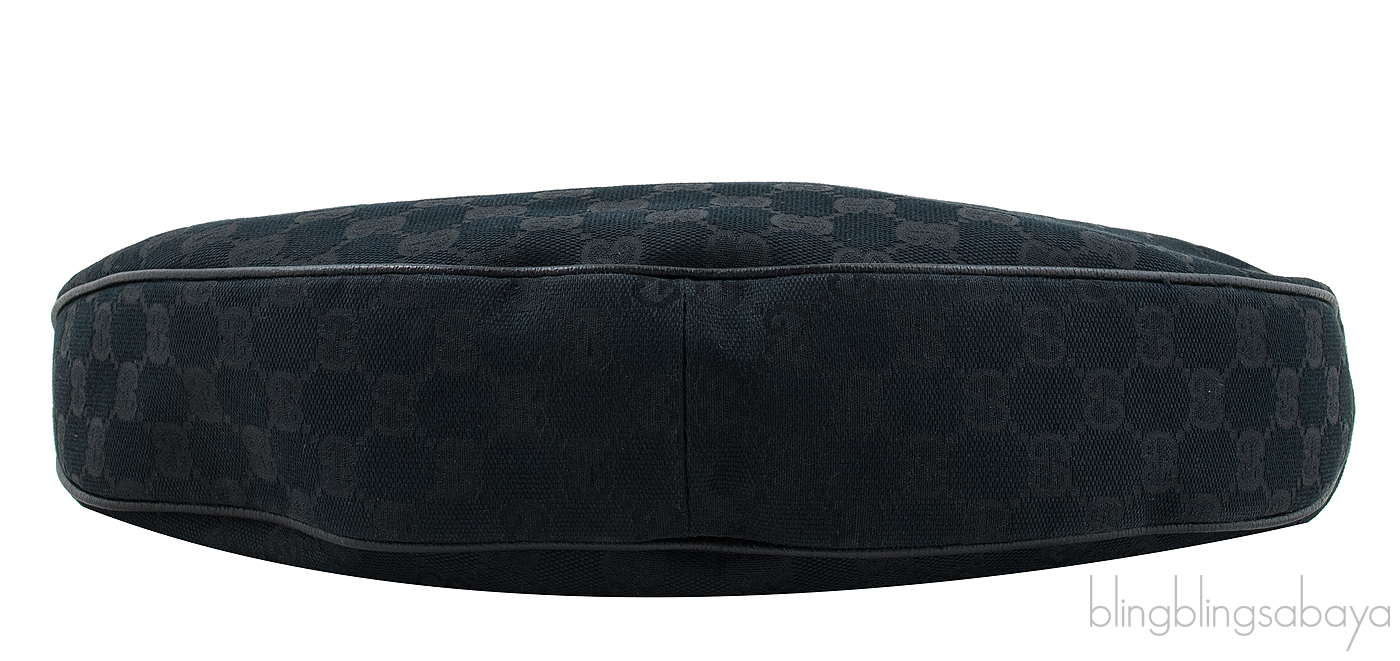 This Canvas Half Moon Bamboo Ring from Gucci is crafted in black printed canvas accented with gold hardware. This bag features a half-moon design in gg printed fabric and flat leather handles, bamboo ring accents connects the handles from the body and has a zip fastening with bamboo zipper pulls. It has an interior lined with coordinating fabric with one zip wall inner compartment.
