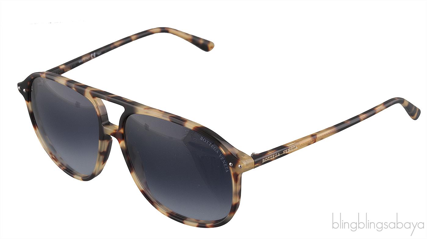 This Cat 3 Tortoise Sunglasses from Bottega Veneta features an acetate rimmed sunglasses with gradient grey lenses and engraved goldlogos at the temples.