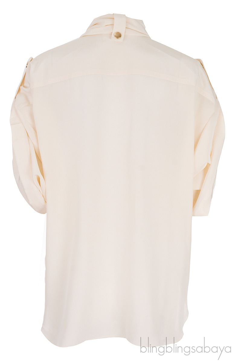 This Chest Pocket Blouse from Chloe is crafted from 100% Silk fabric in buttercream hue. This blouse features a straight fit, front snap fastening, two chest pockets , adjustable short sleeves and curve hemline.