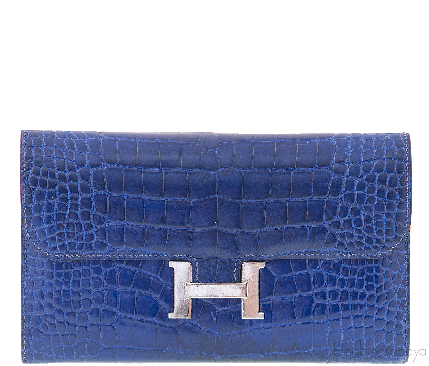 This most awaited Constance Clutch Wallet from Hermes is crafted in so stunning Bleu Electrique Alligator Crocodile skin accented with Palladium Hardware. This clutch features a flap closure that folds securely in a bold, Silver iconic "H" on the front.